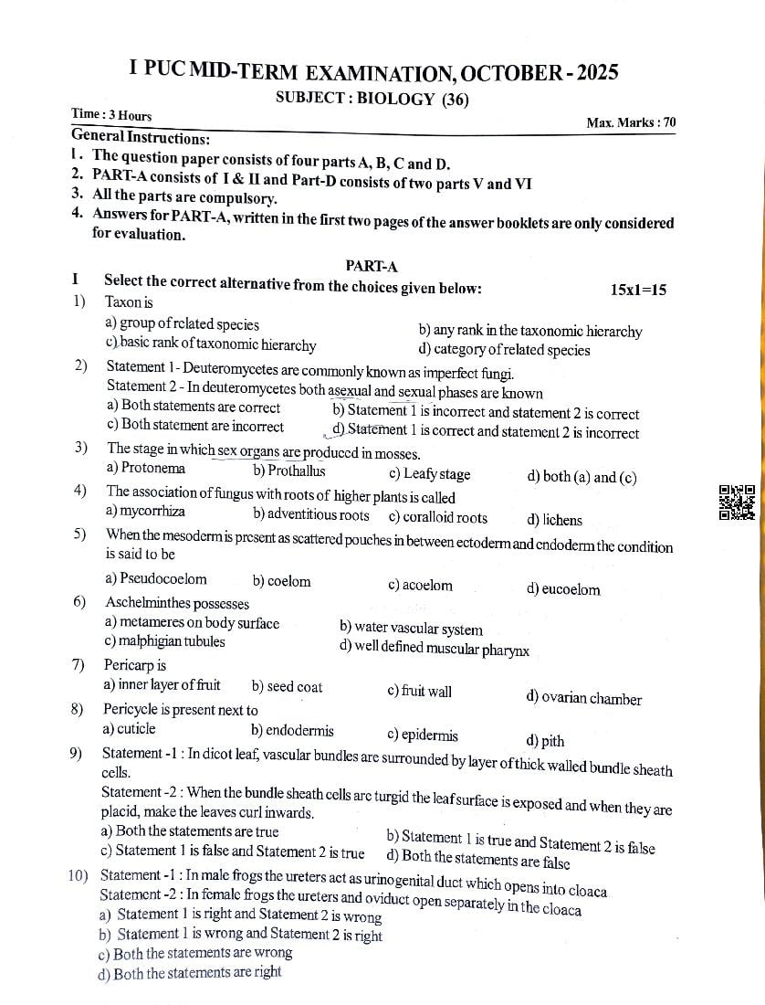 If you have any queries on Karnataka 1st PUC Biology Mid Term Question Paper 2025, then please ask in comments below.