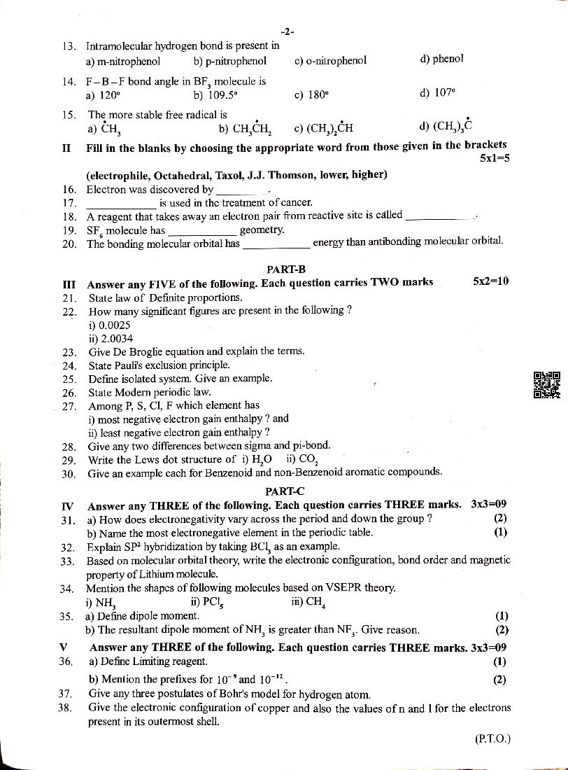The Karnataka Board Question Paper for Chemistry mid term exam is as follows.