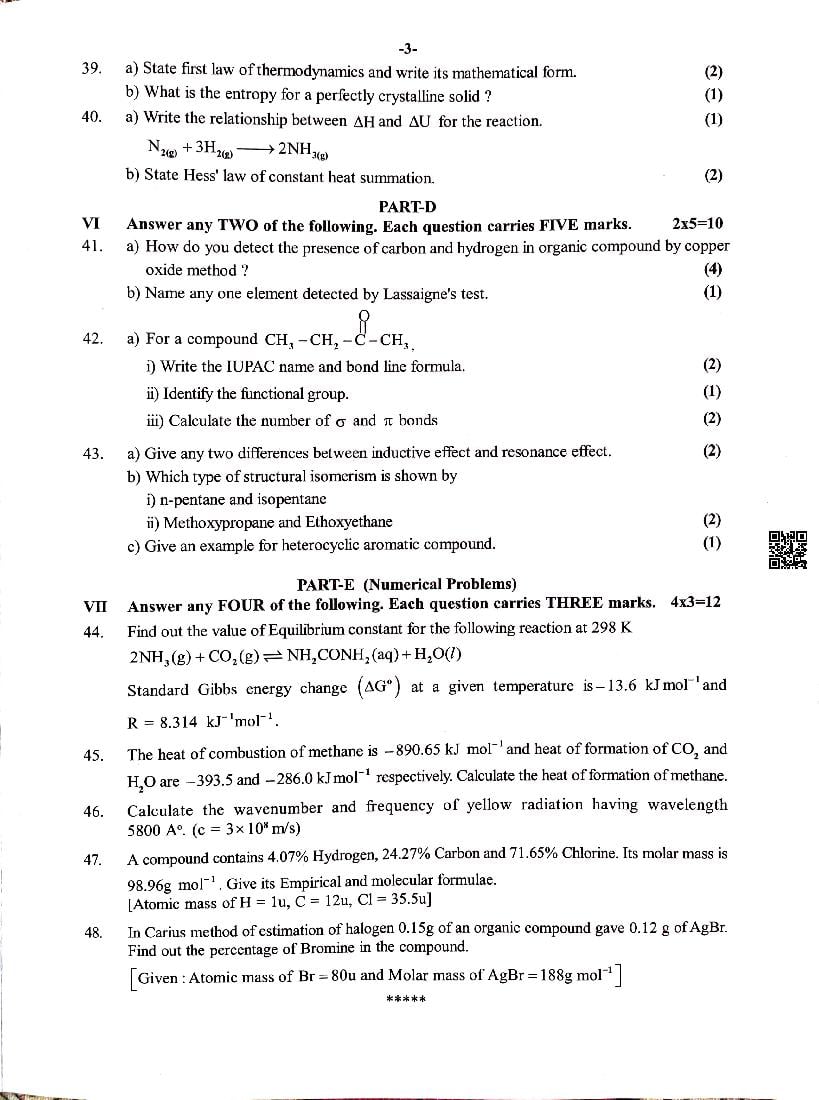The latest available complete Chemistry mid term exam question paper is as follows.