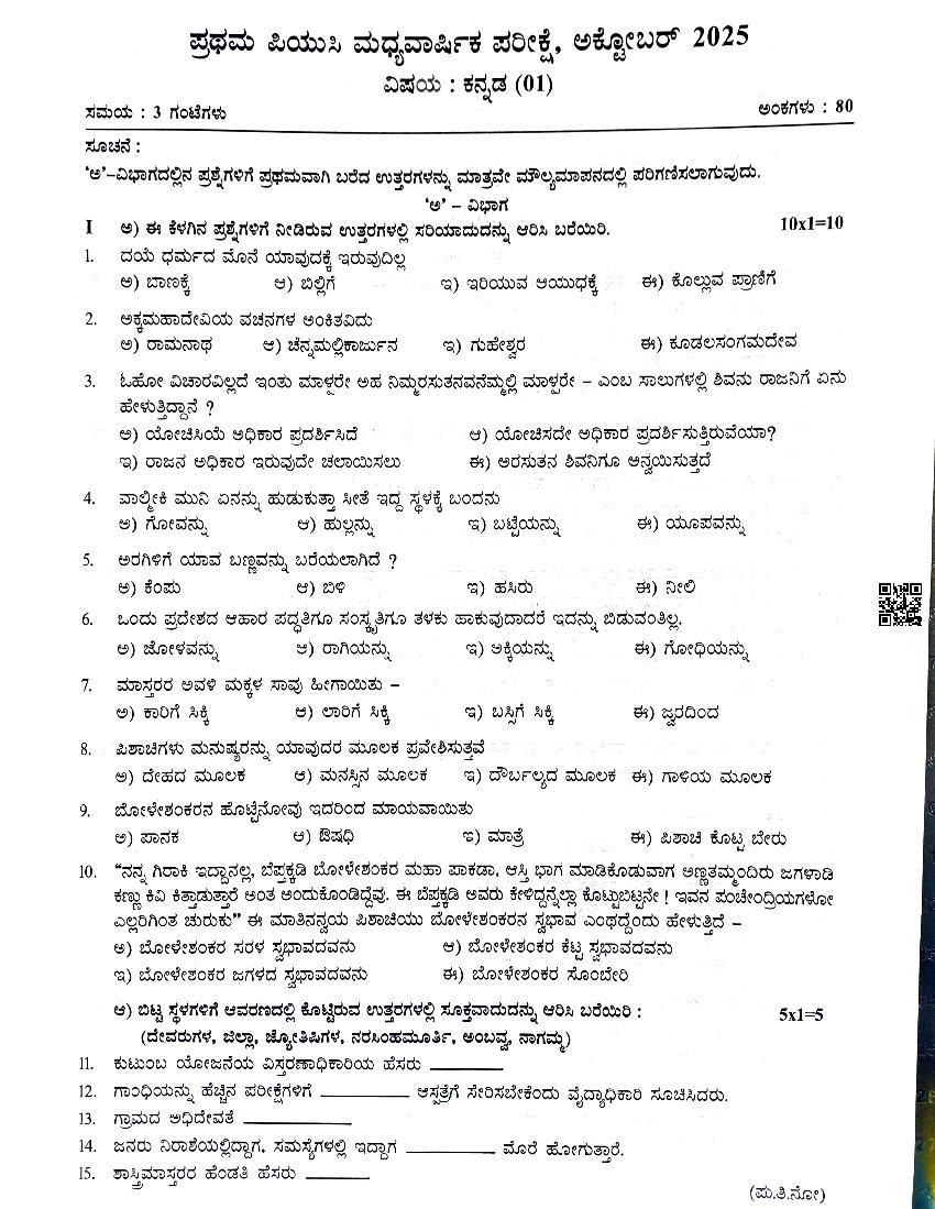 If you have any queries on Karnataka 1st PUC Kannada Mid Term Question Paper 2025, then please ask in comments below.