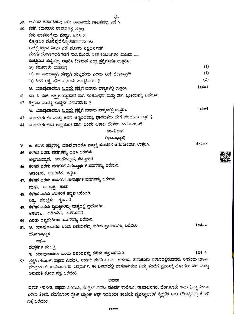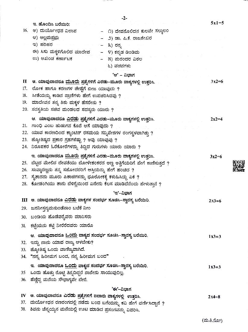 The Karnataka Board Question Paper for Kannada mid term exam is as follows.