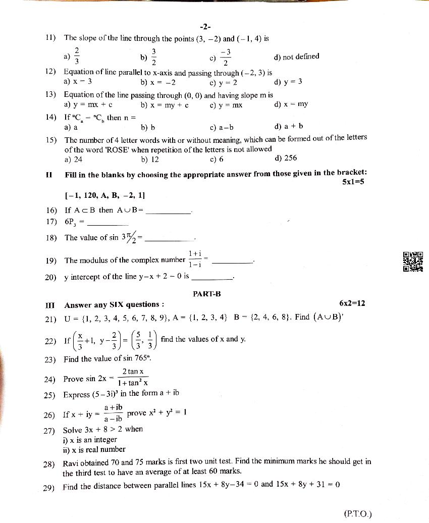 The Karnataka Board Question Paper for Maths mid term exam is as follows.