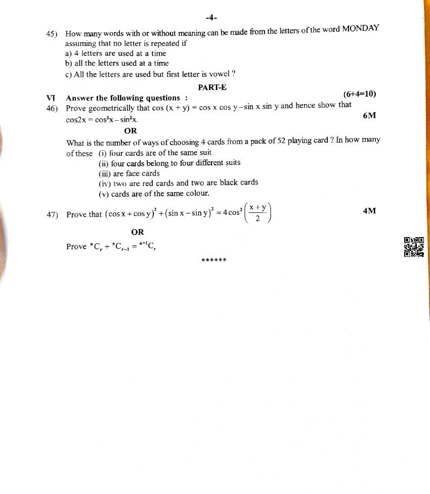 | Material | Karnataka 1st PUC Mid Term Exam Question Paper of Maths |