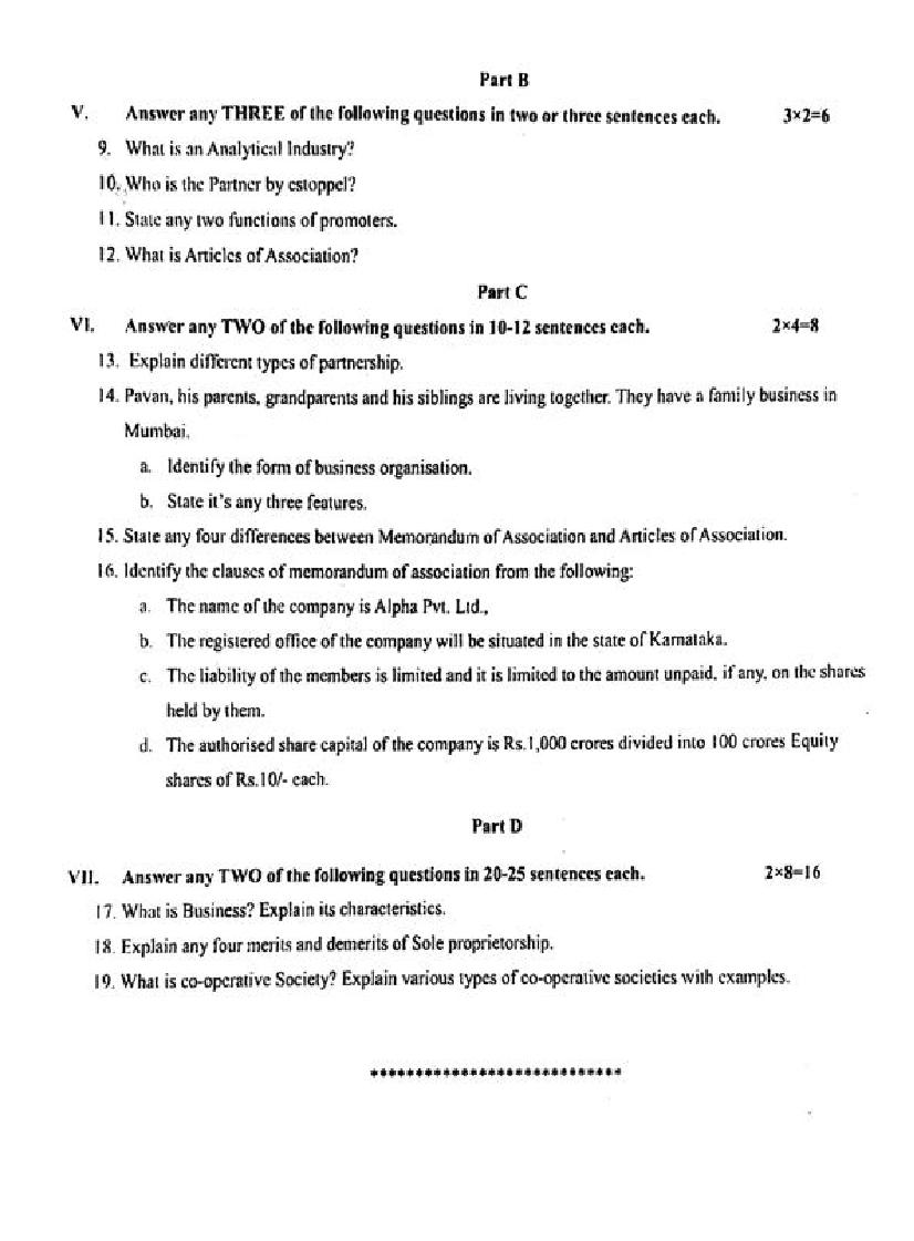 The Karnataka Board Question Paper for Business Studies Quarterly exam is as follows.
