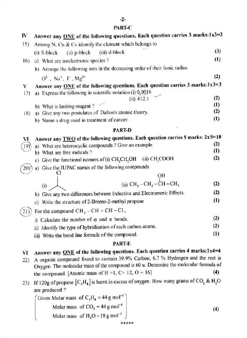 The latest available complete Chemistry Quarterly exam question paper is as follows.