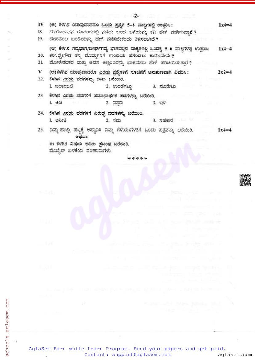 The Karnataka Board Question Paper for Kannada Quarterly exam is as follows.