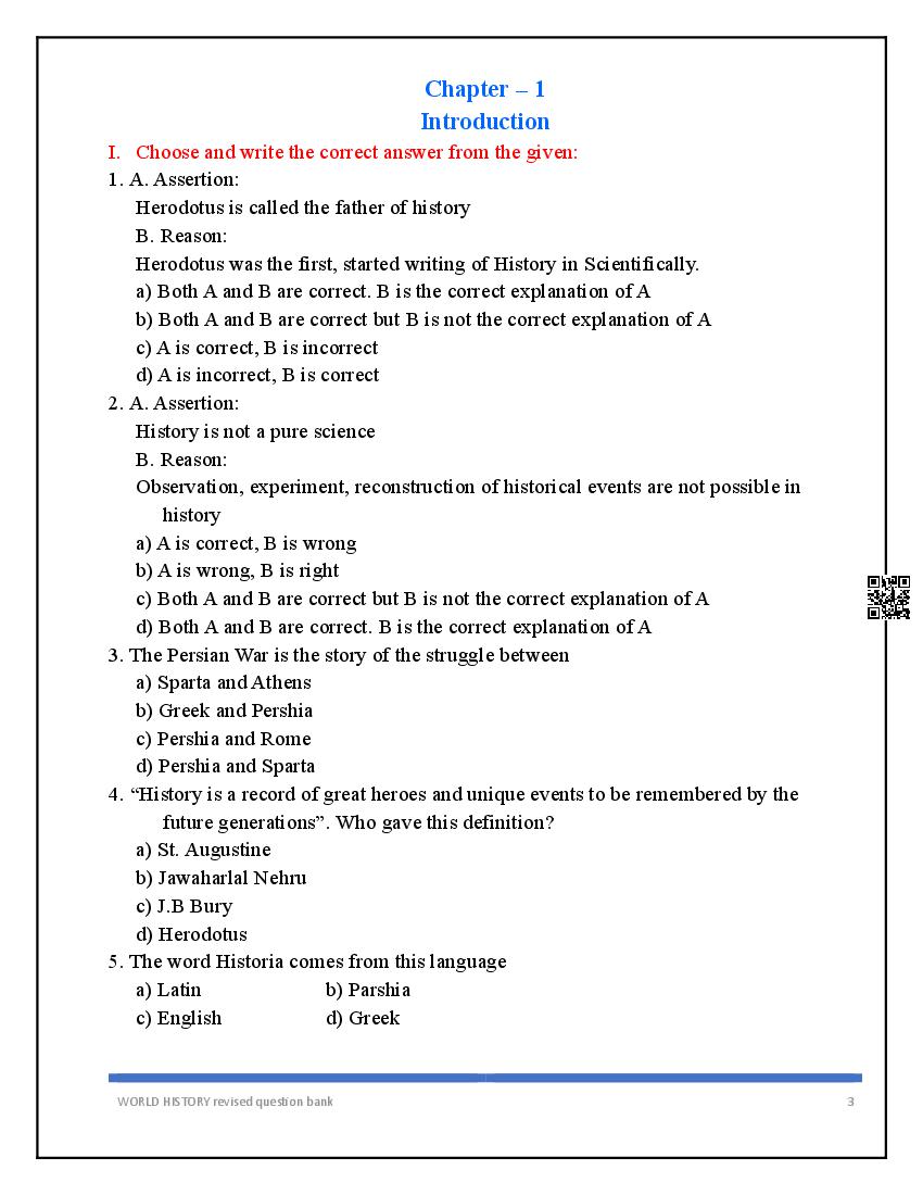 Class 11 History Question Bank Download Link – Click Here to Download History Question Bank PDF