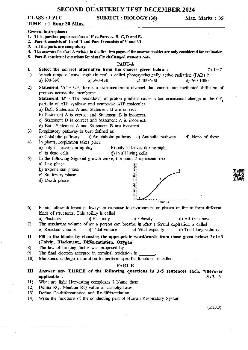 The complete Biology Second Quarterly Test december 2026 question paper is as follows.