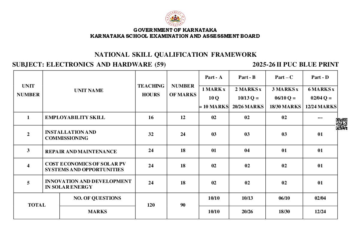 Karnataka 2nd PUC Blueprint 2026 for Electronics and Hardware View Download
