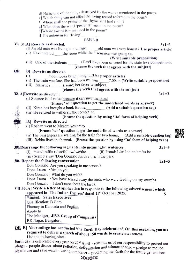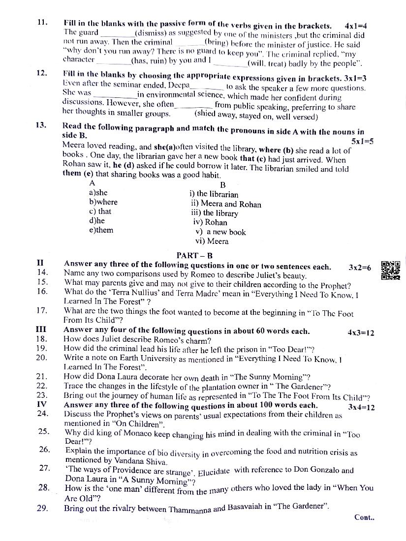 The Karnataka Board Question Paper for English mid term exam is as follows.