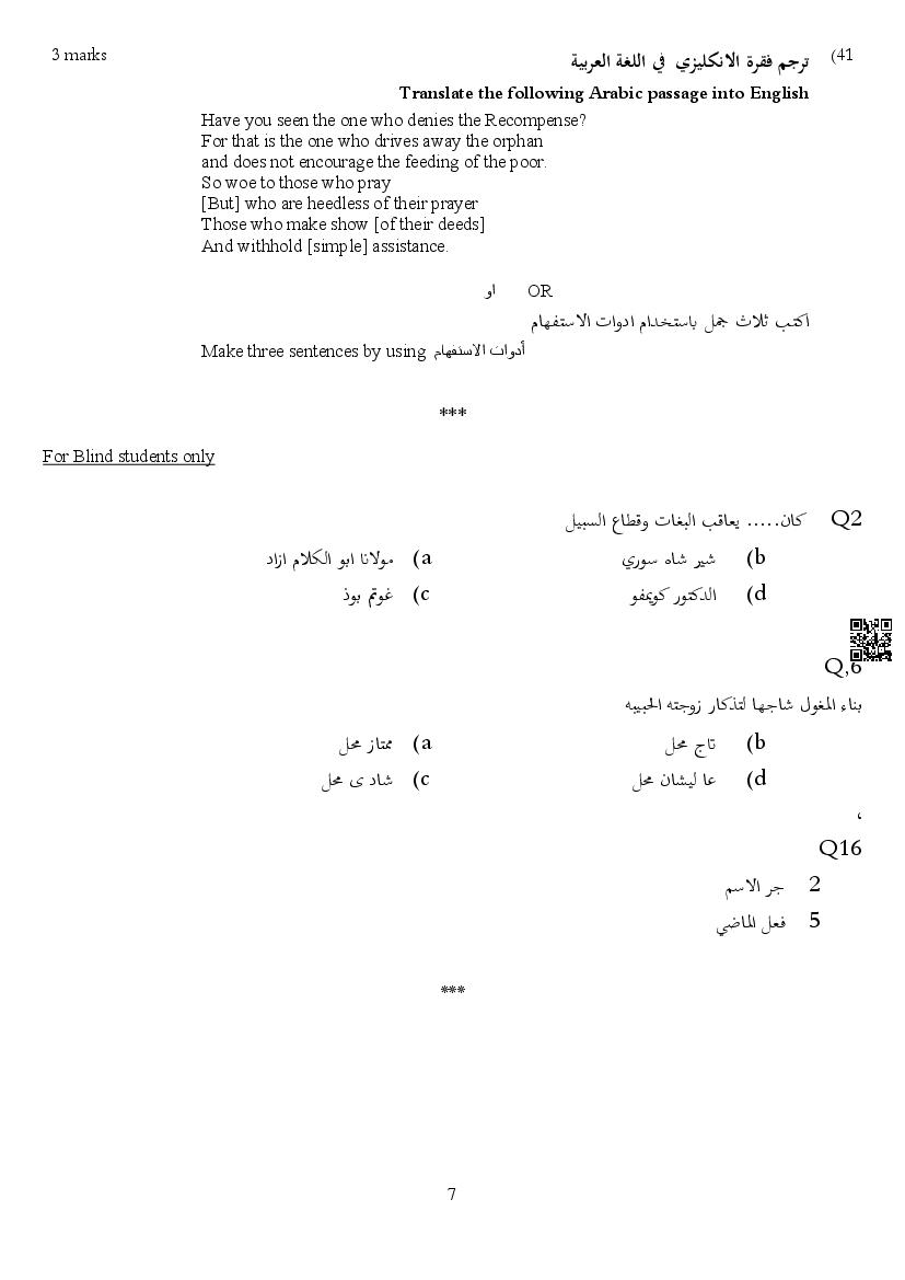 | Study Material Here | Karnataka 2nd PUC Model Paper of Arabic |