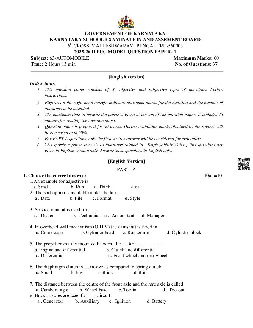 If you have any queries on Karnataka 2nd PUC Automotive Model Question Paper 2026, then please ask in comments below.