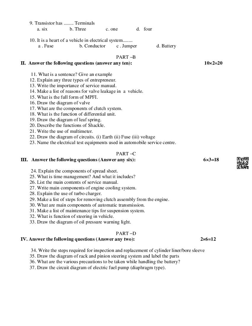 | Study Material Here | Karnataka 2nd PUC Model Paper of Automotive |