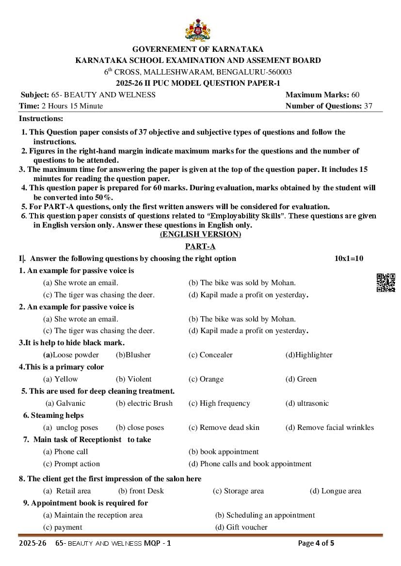 If you have any queries on Karnataka 2nd PUC Beauty And Wellness Model Question Paper 2026, then please ask in comments below.