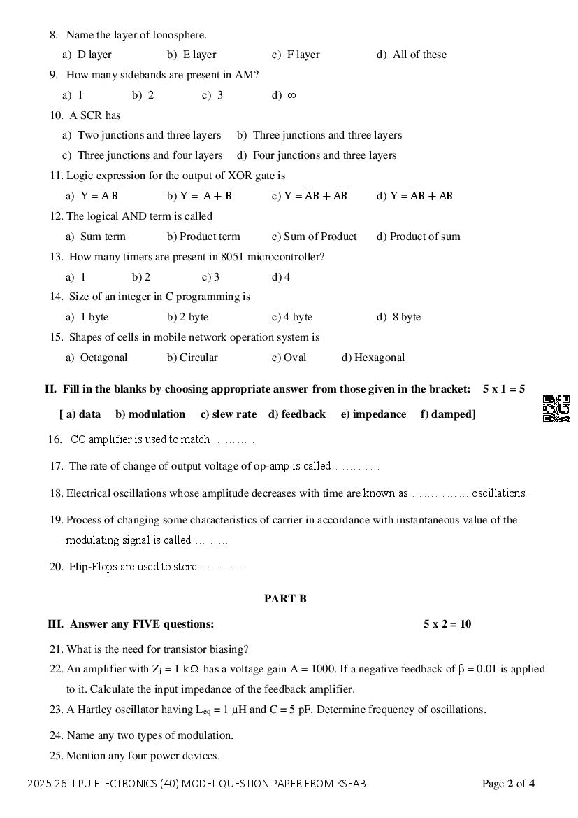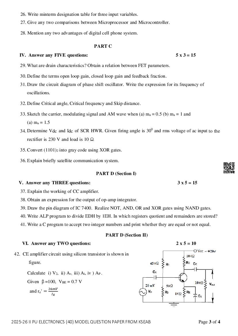 If you have any queries on Karnataka 2nd PUC Electronics Model Question Paper 2026, then please ask in comments below.