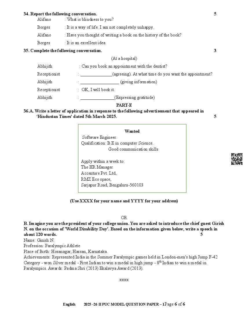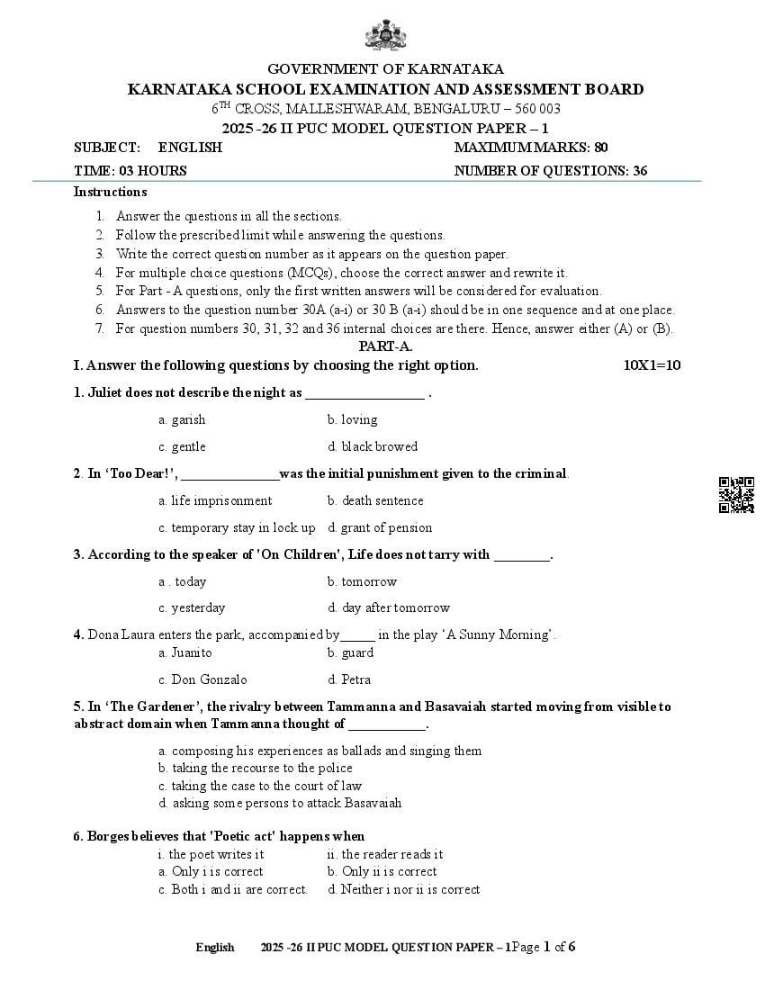 If you have any queries on Karnataka 2nd PUC English Model Question Paper 2026, then please ask in comments below.