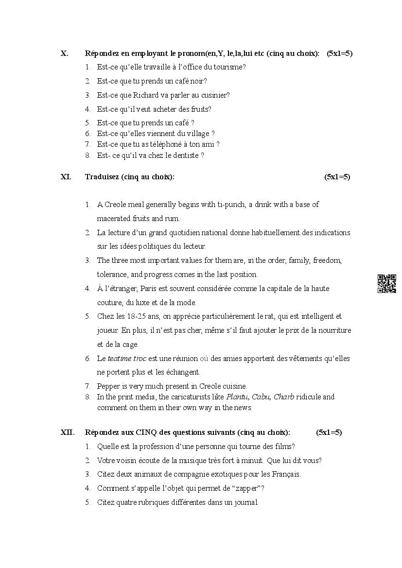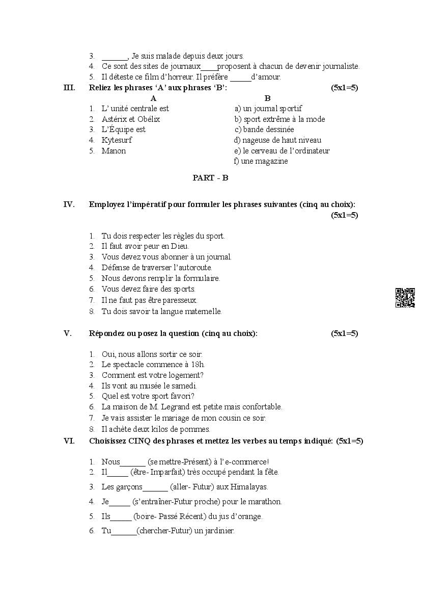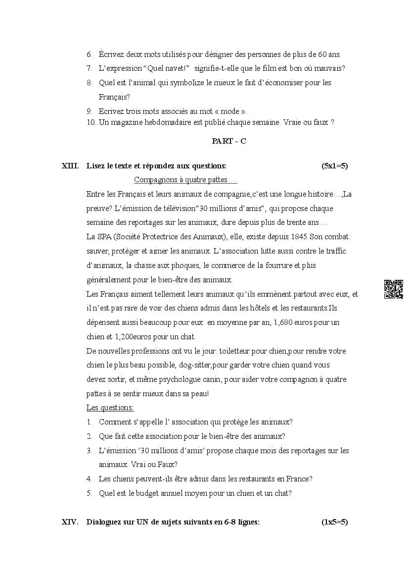 The Karnataka Board Model Paper for class 12 (2nd PUC) French is as follows.