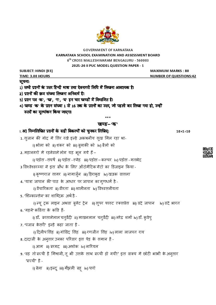 If you have any queries on Karnataka 2nd PUC Hindi Model Question Paper 2026, then please ask in comments below.