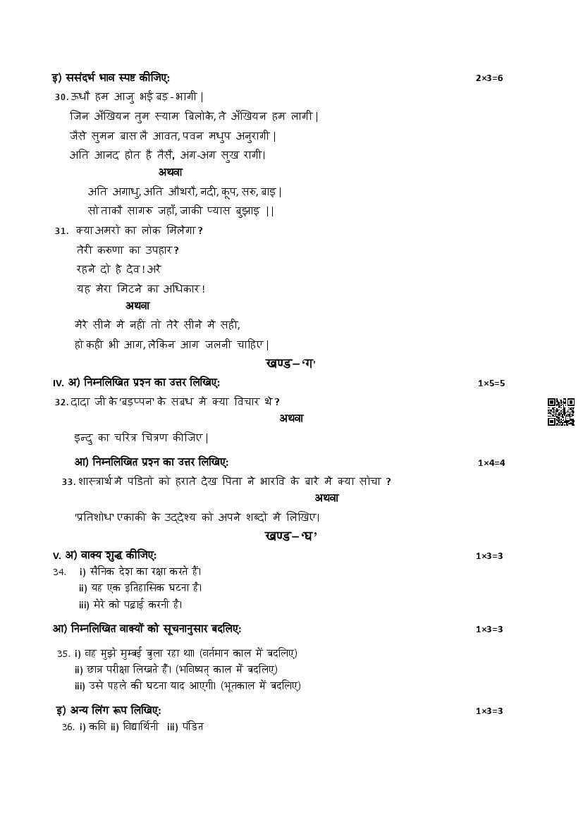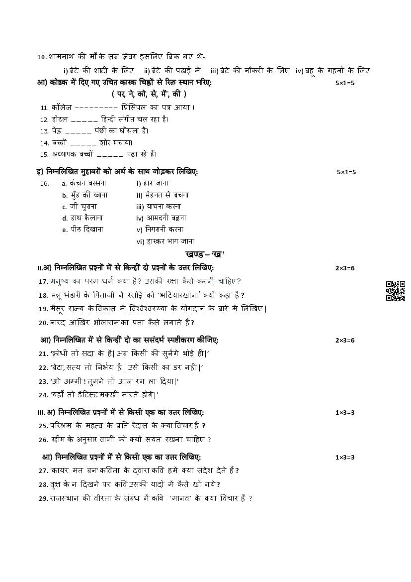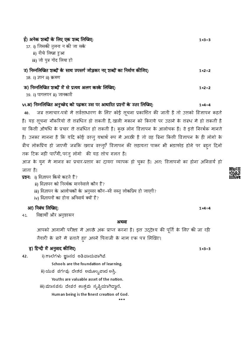 The Karnataka Board Model Paper for class 12 (2nd PUC) Hindi is as follows.