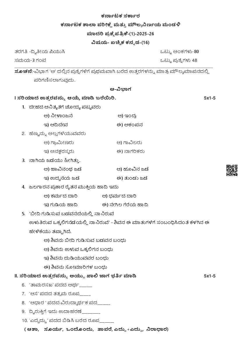 If you have any queries on Karnataka 2nd PUC Kannada Optional Model Question Paper 2026, then please ask in comments below.