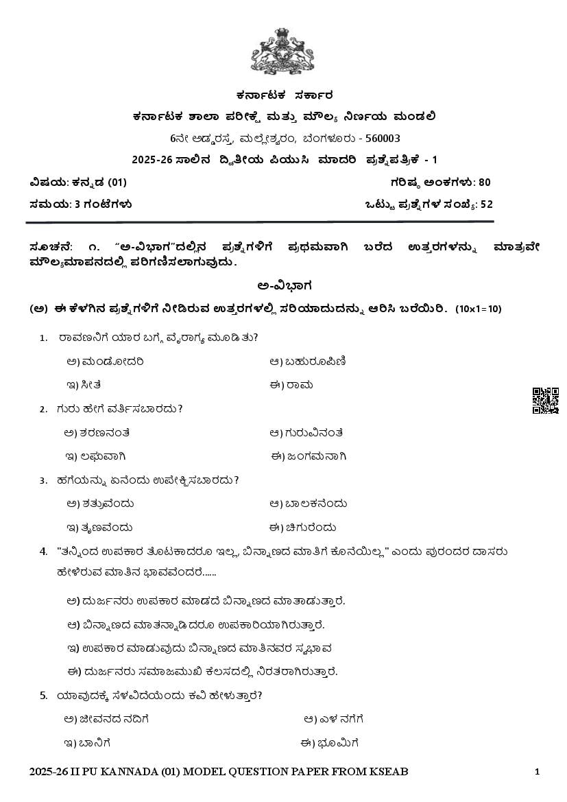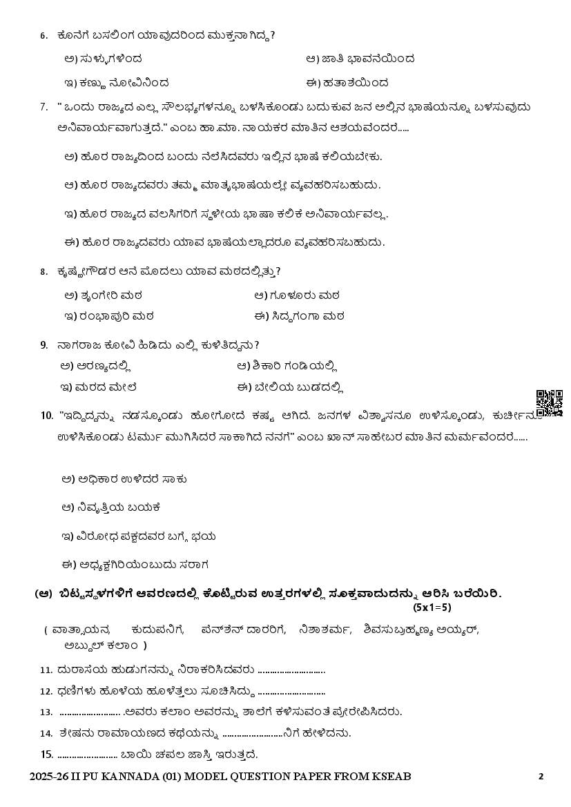 If you have any queries on Karnataka 2nd PUC Kannada Model Question Paper 2026, then please ask in comments below.