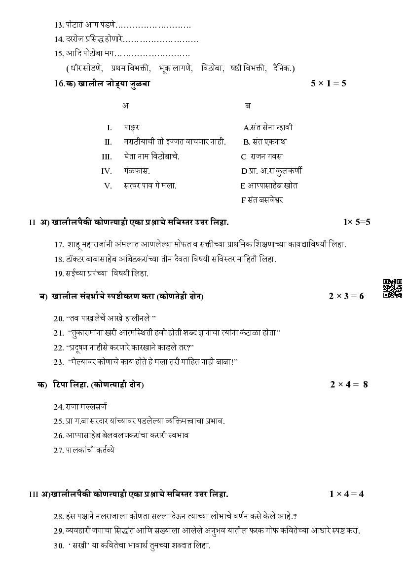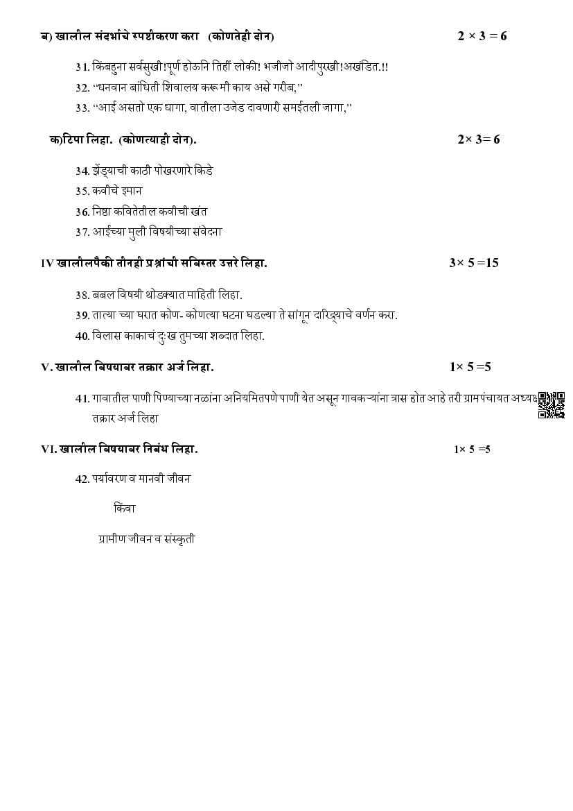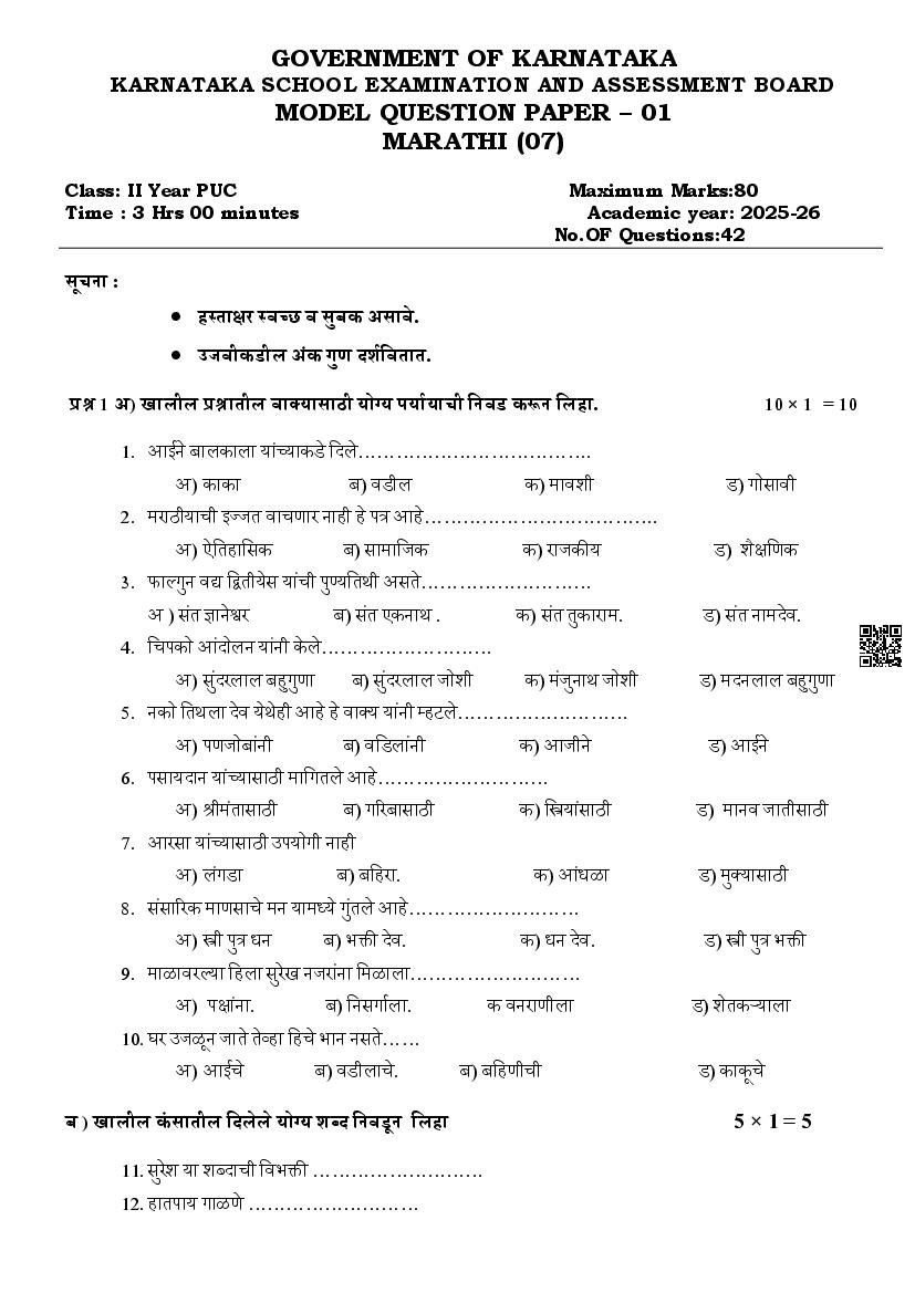 The Karnataka Board Model Paper for class 12 (2nd PUC) Marathi is as follows.