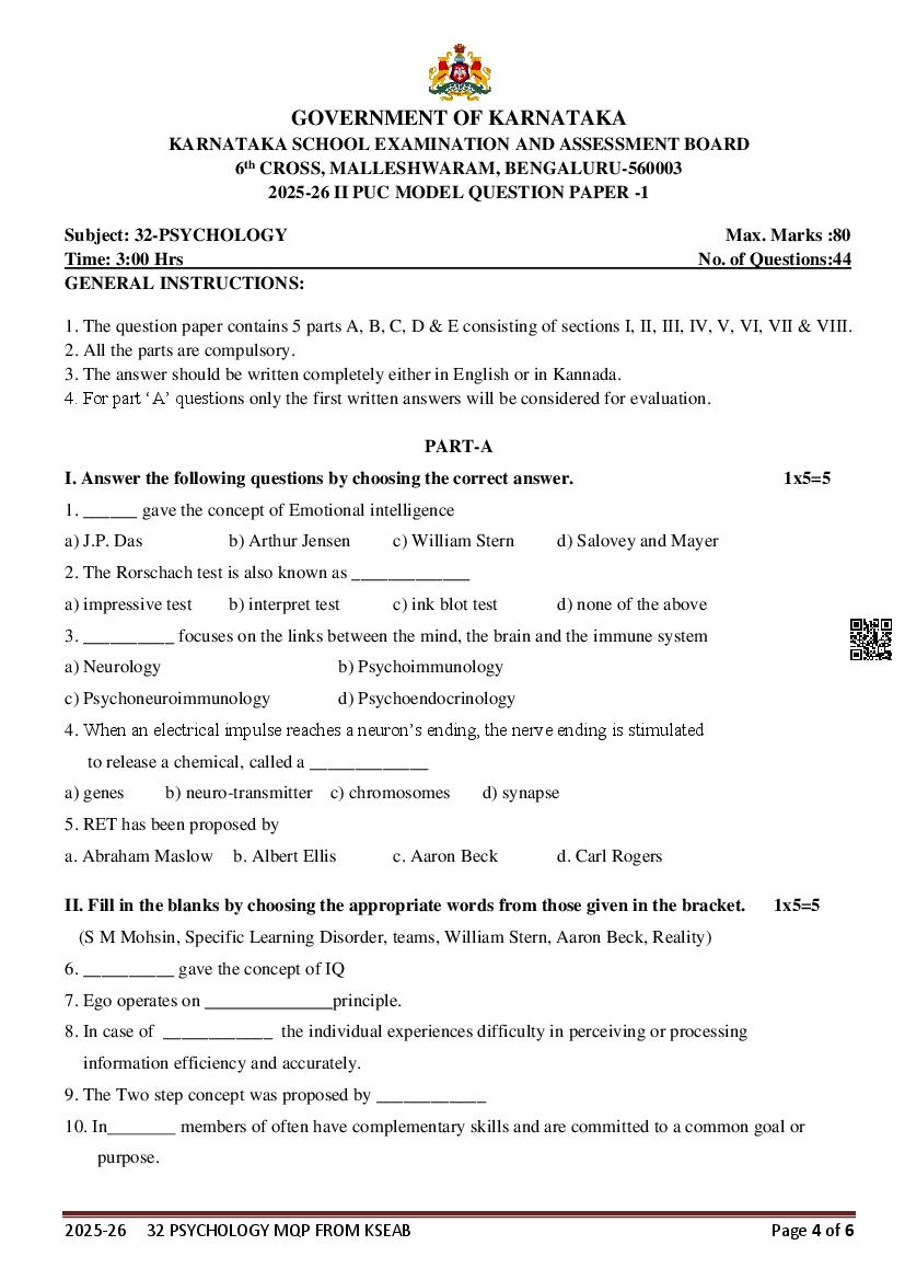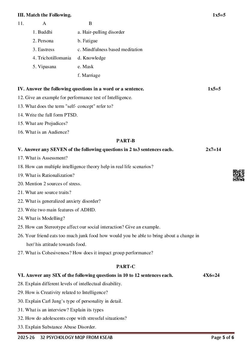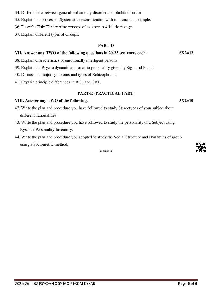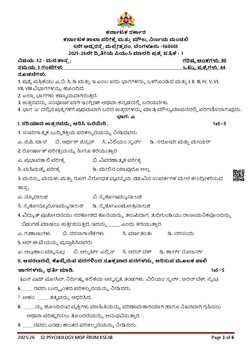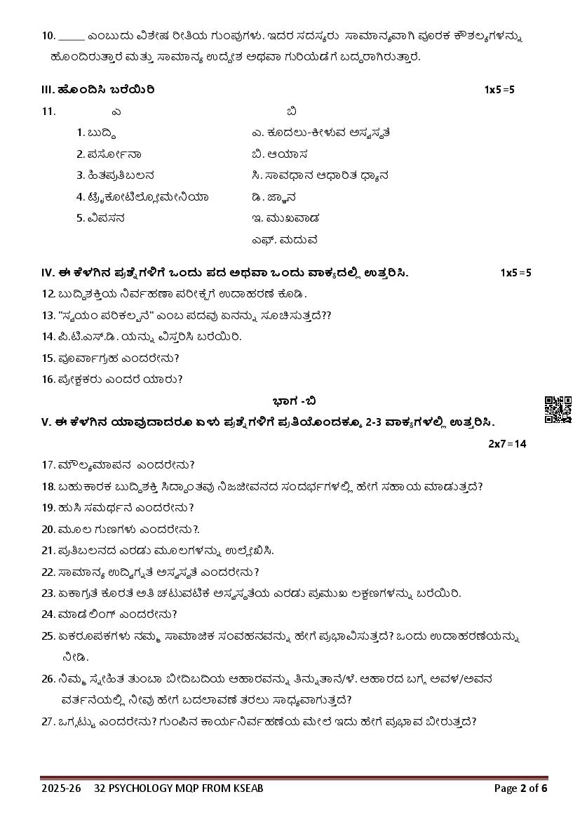 If you have any queries on Karnataka 2nd PUC Psychology Model Question Paper 2026, then please ask in comments below.