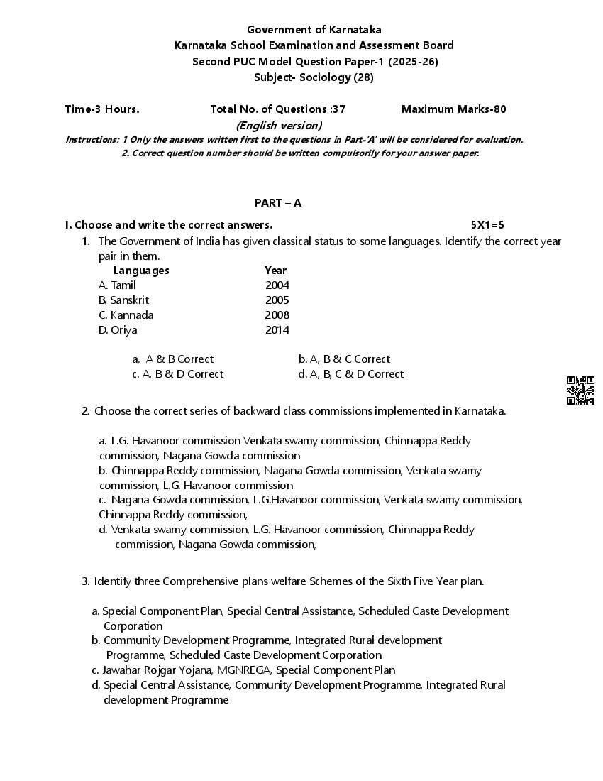 If you have any queries on Karnataka 2nd PUC Sociology Model Question Paper 2026, then please ask in comments below.