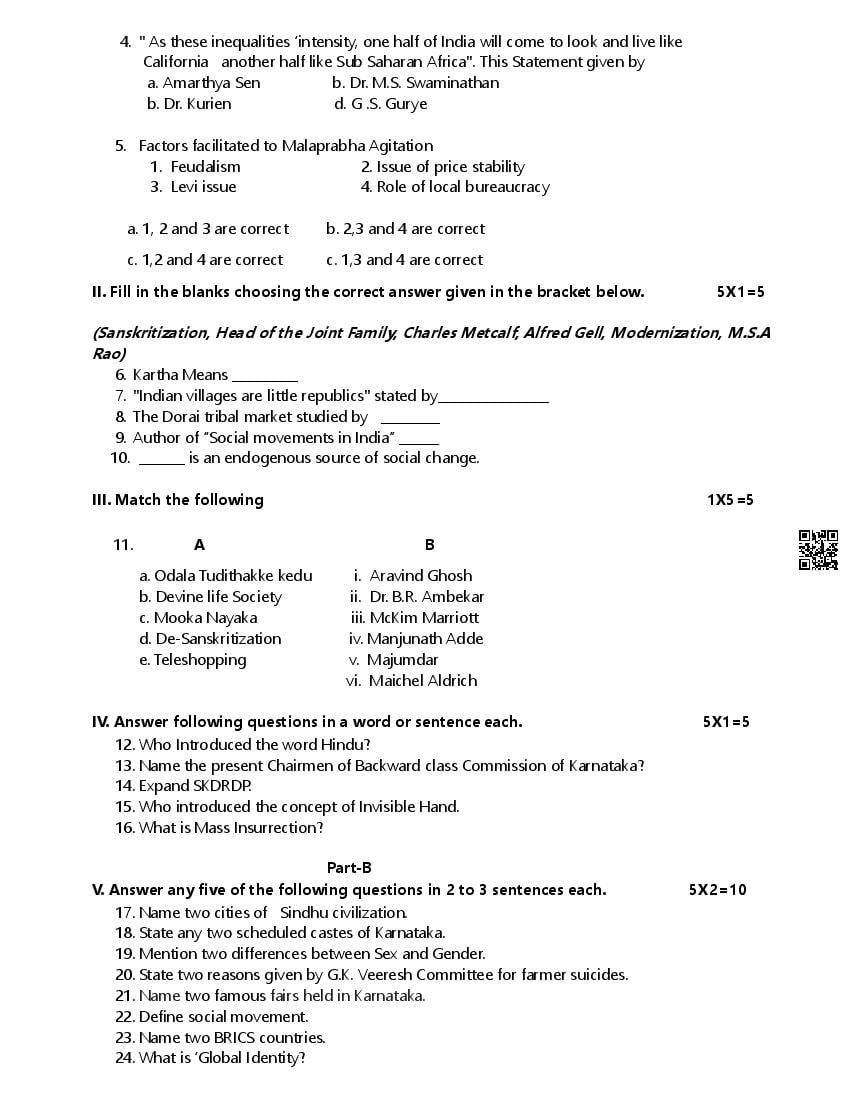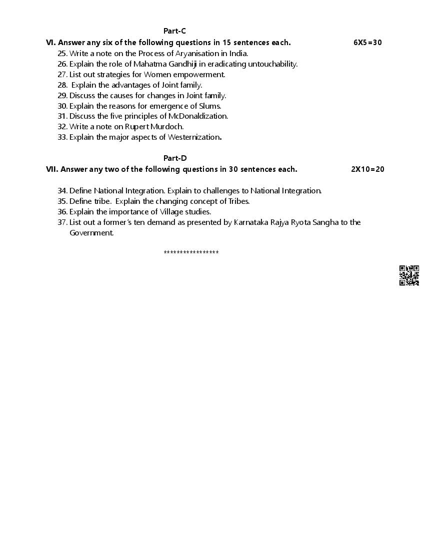 The Karnataka Board Model Paper for class 12 (2nd PUC) Sociology is as follows.