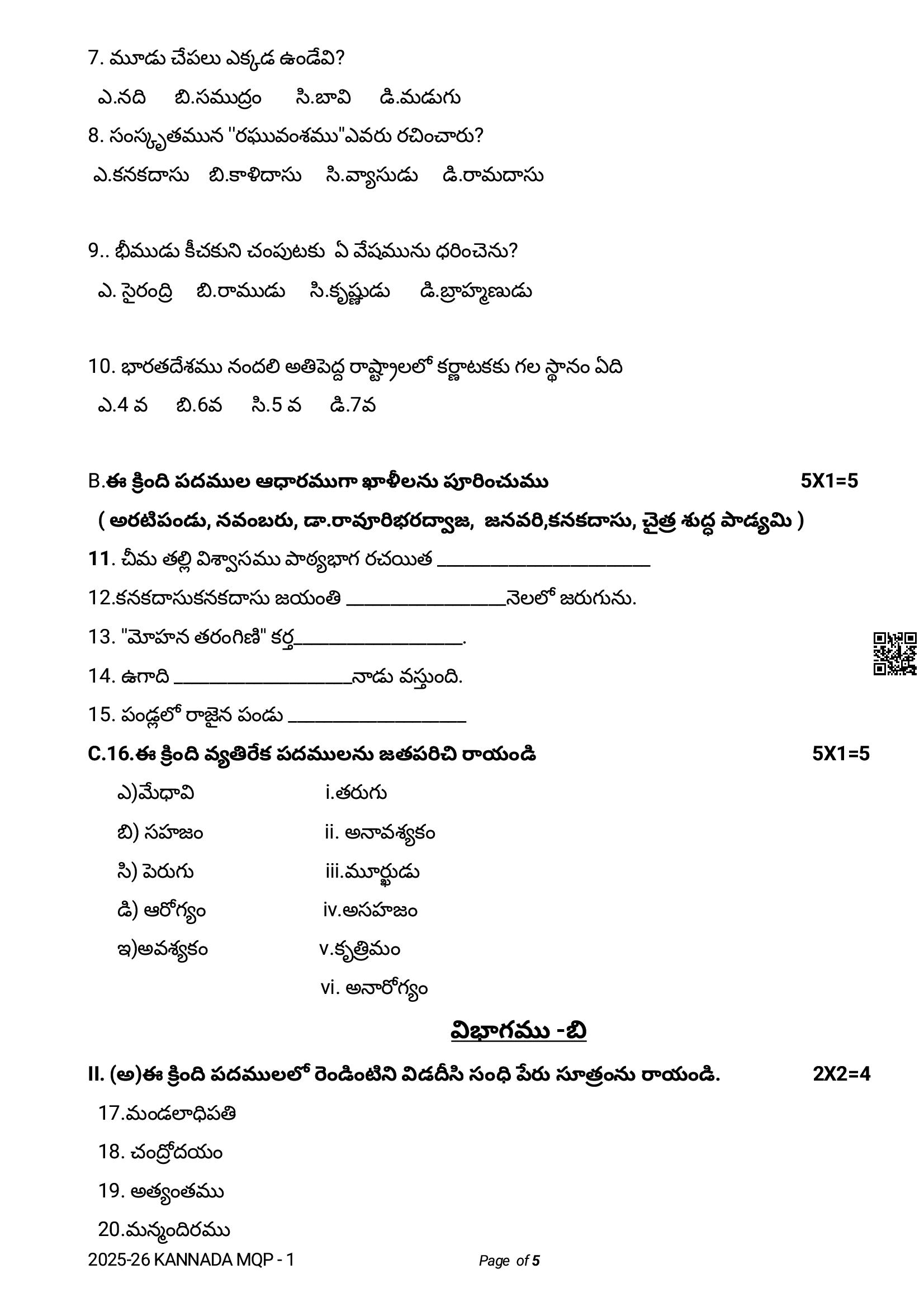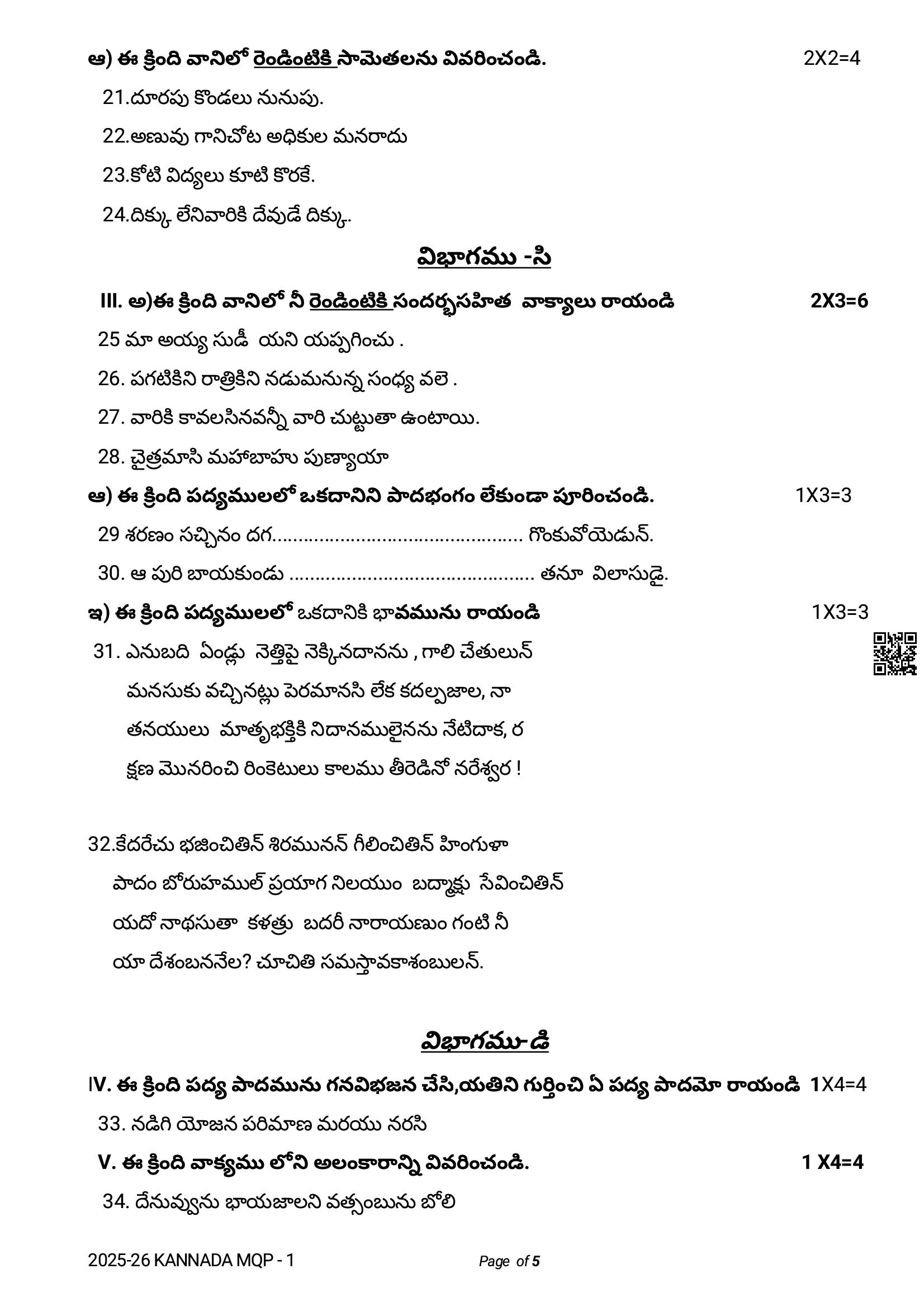 The latest Telugu sample paper is as follows.