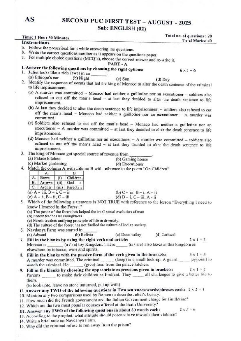 | Material | Karnataka 2nd PUC Quarterly Exam Question Paper of English |