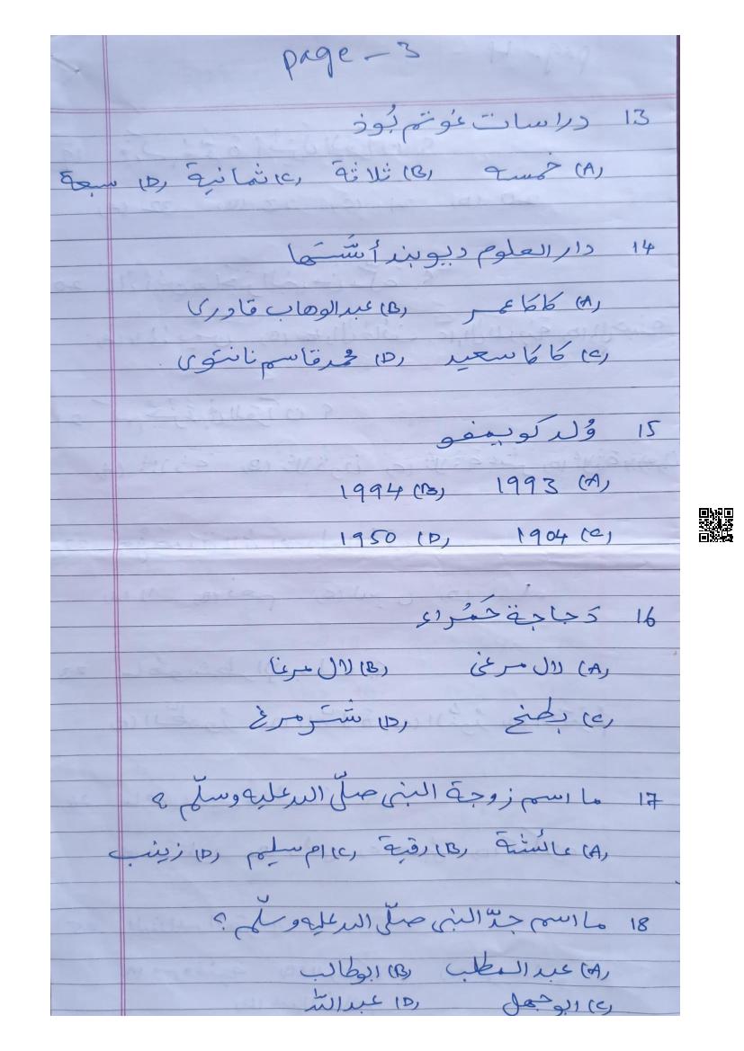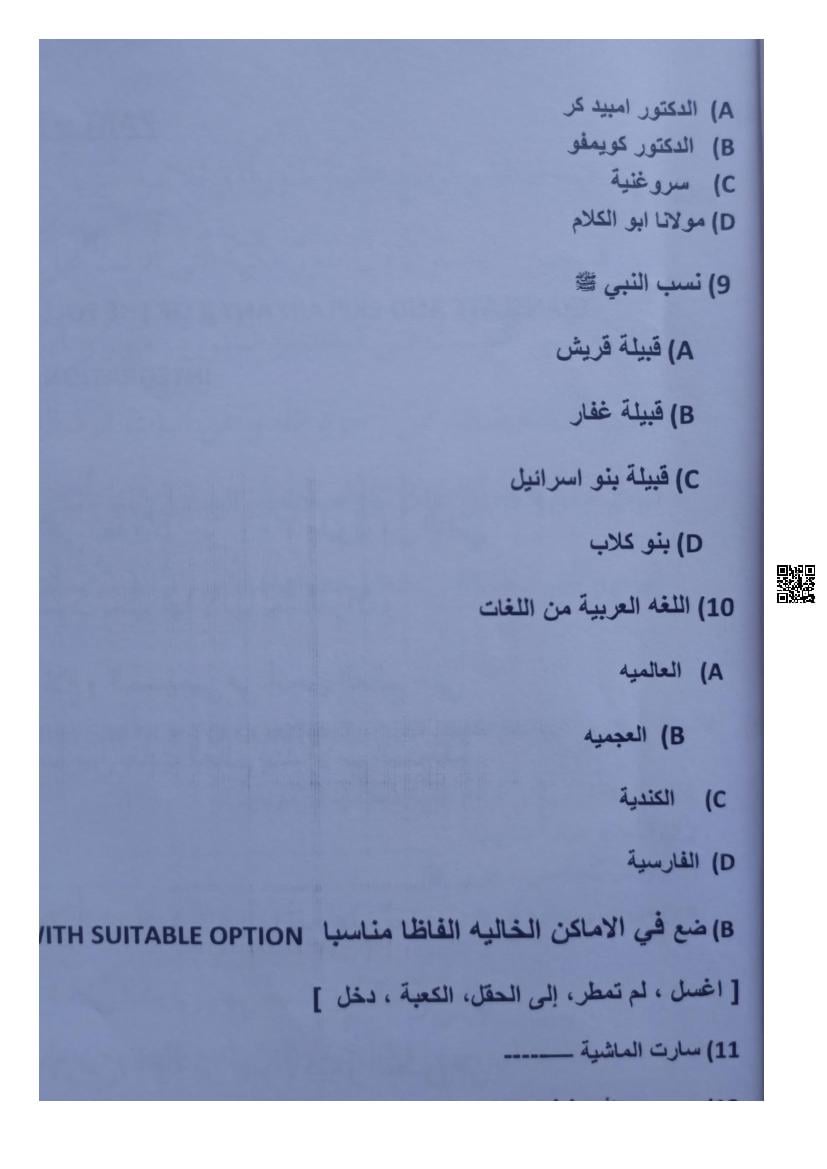 Karnataka II PUC Arabic Question Bank