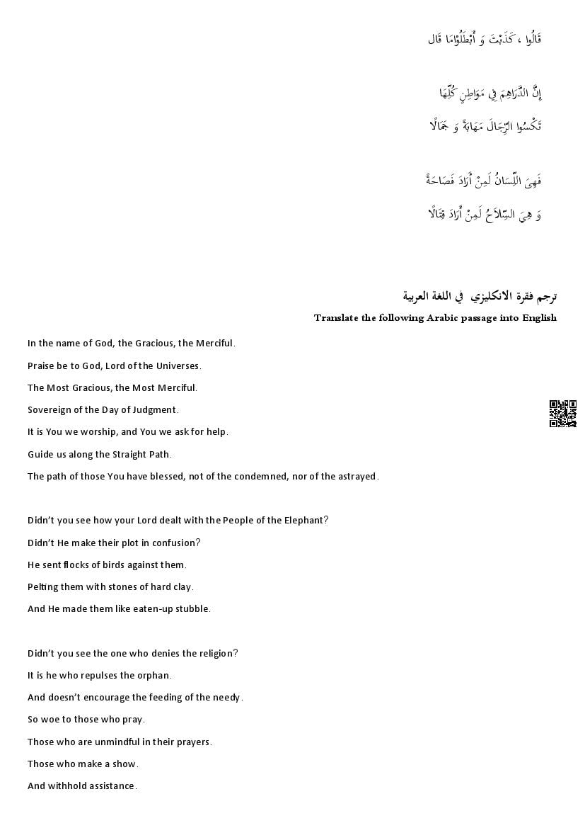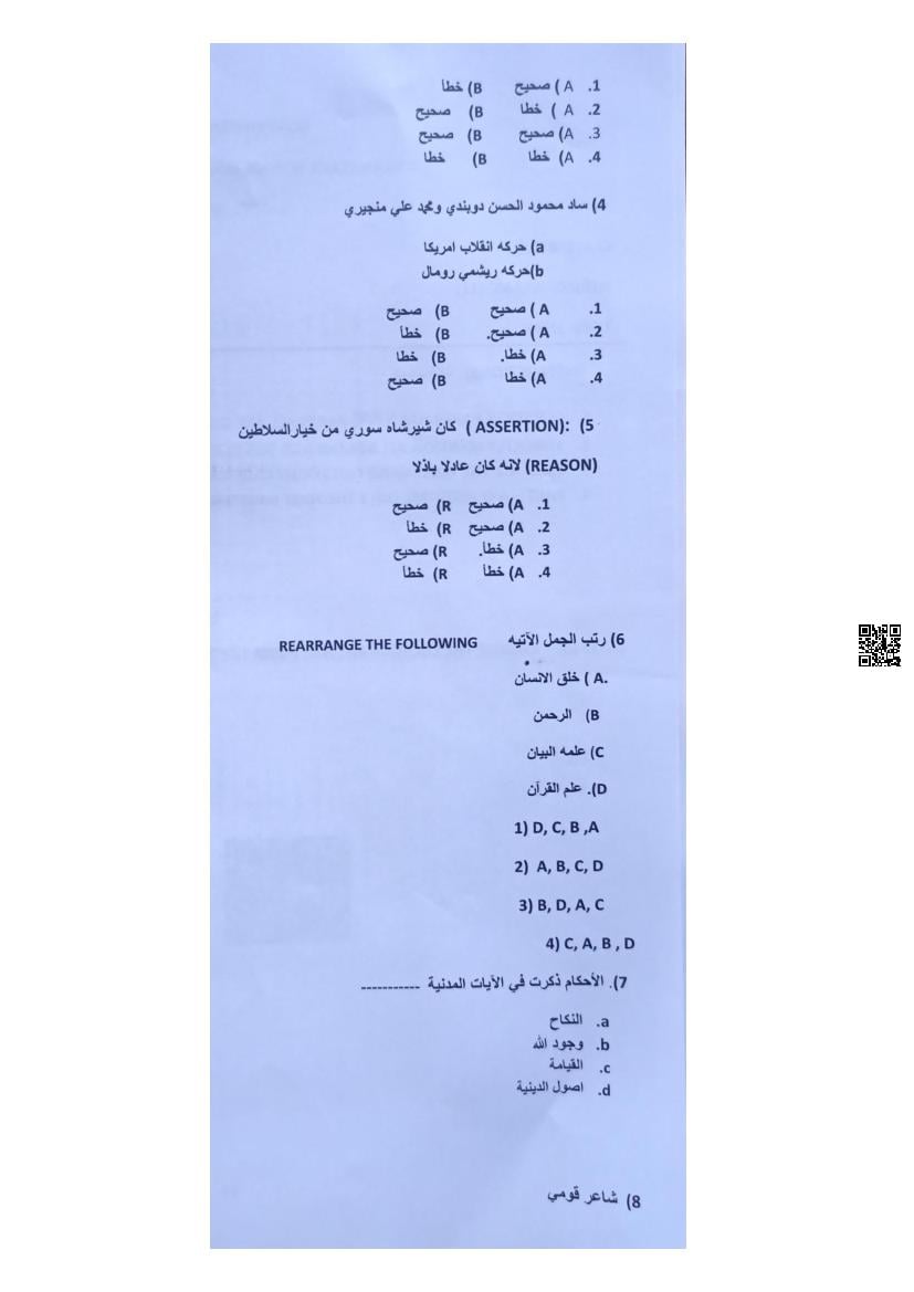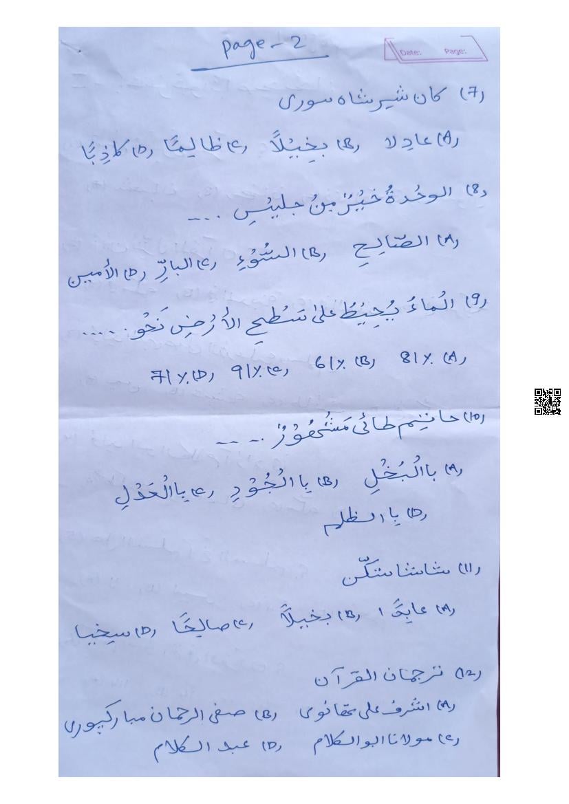 Karnataka 2nd PUC Question Bank for Arabic View Download