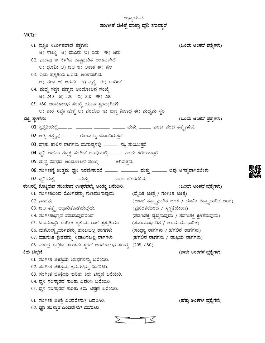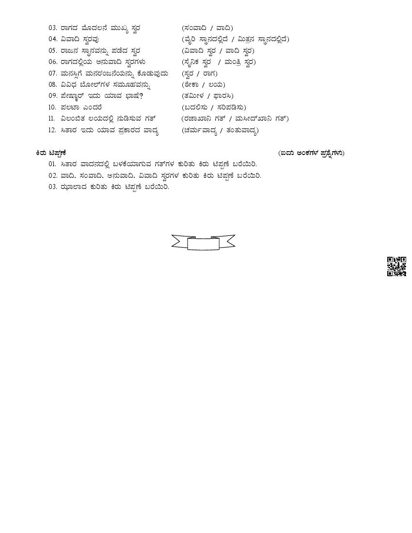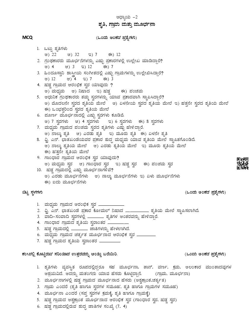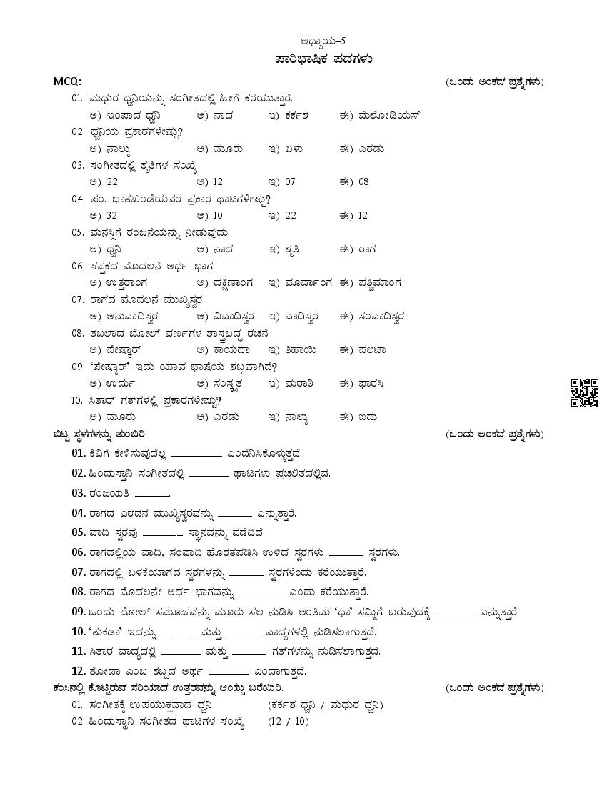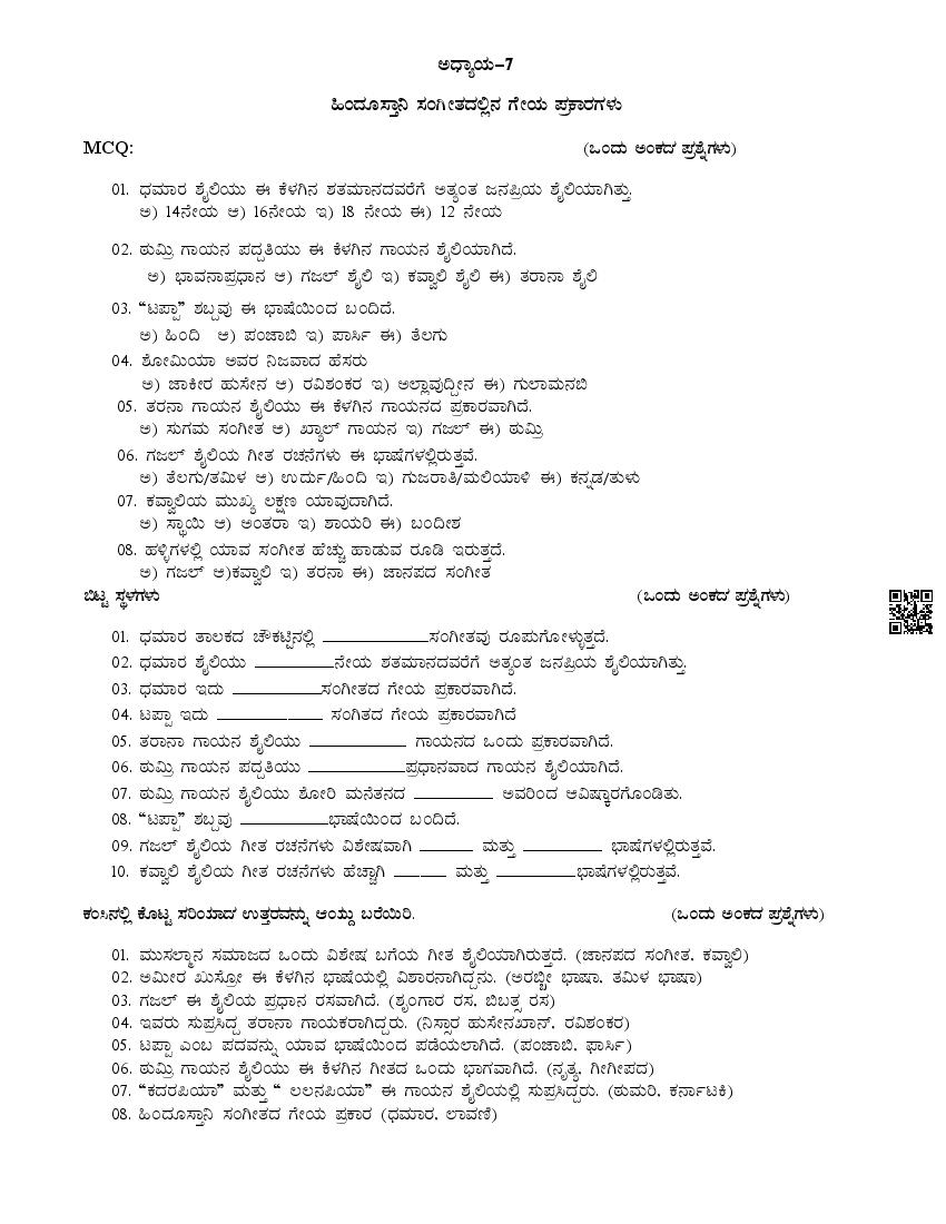 Karnataka 2nd PUC Hindustani Music Question Bank PDF