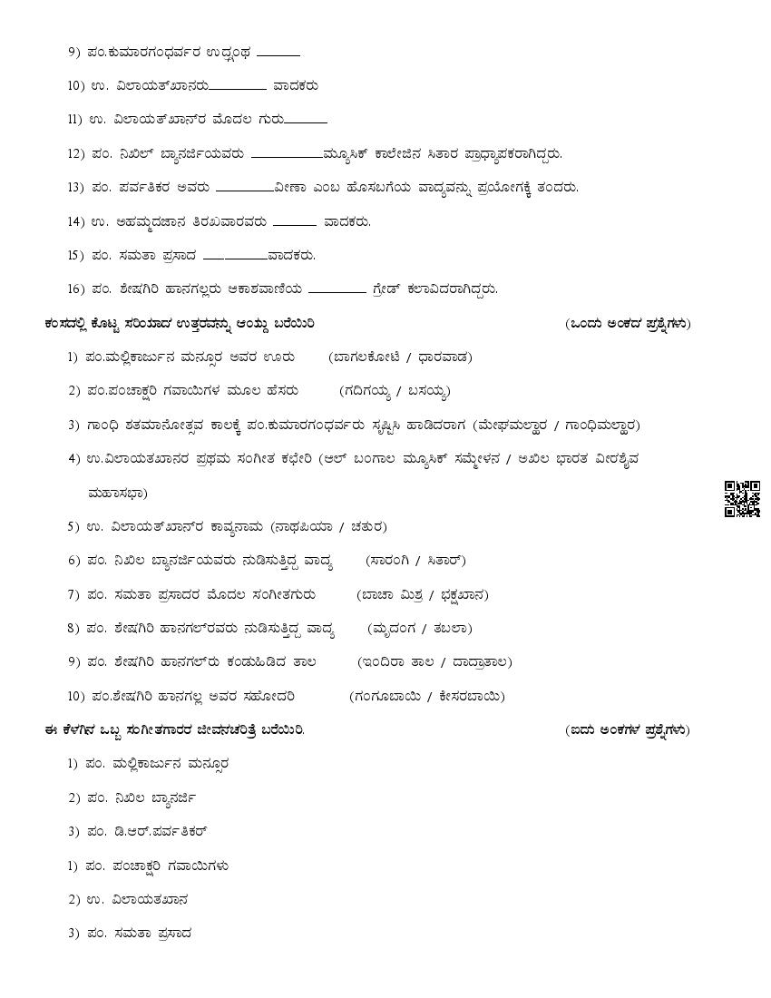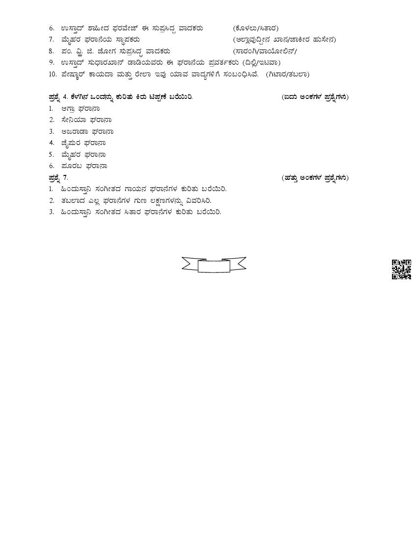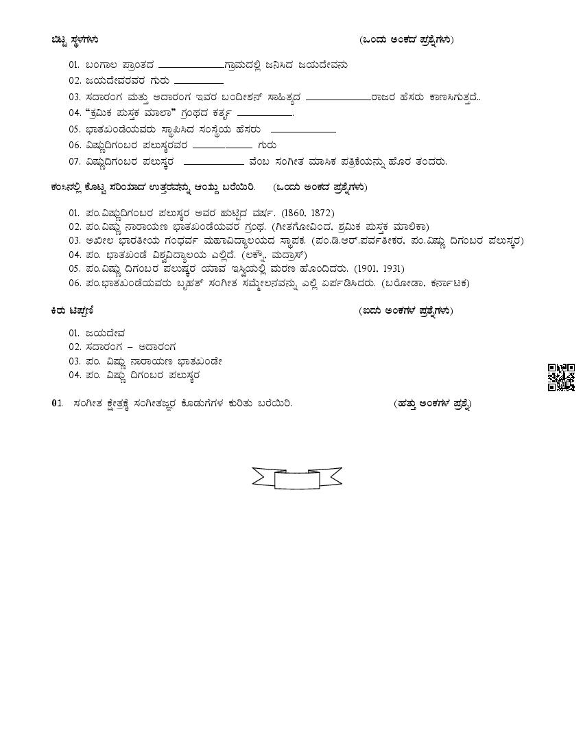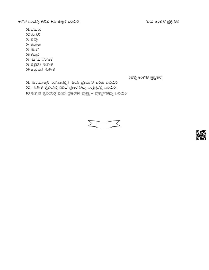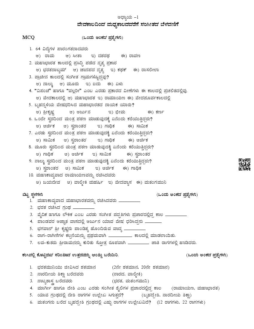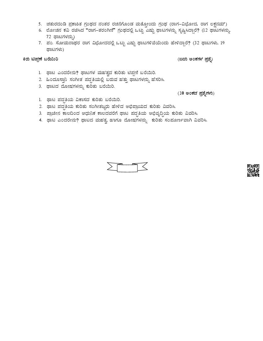 Karnataka 2nd PUC Question Bank for Hindustani Music View Download
