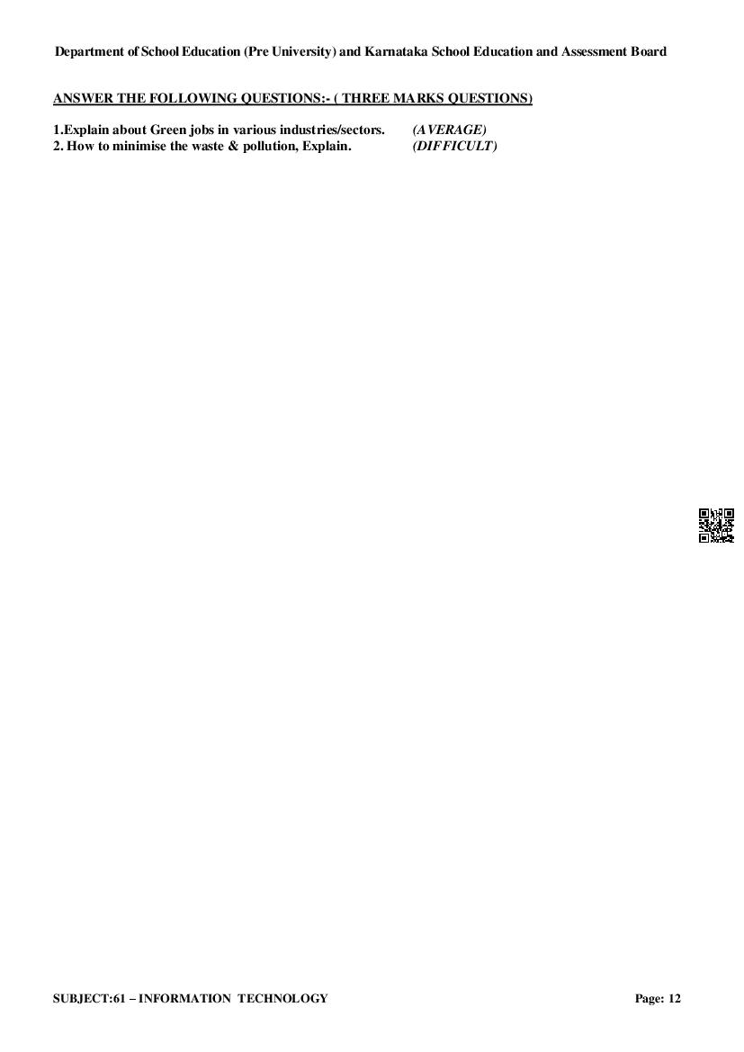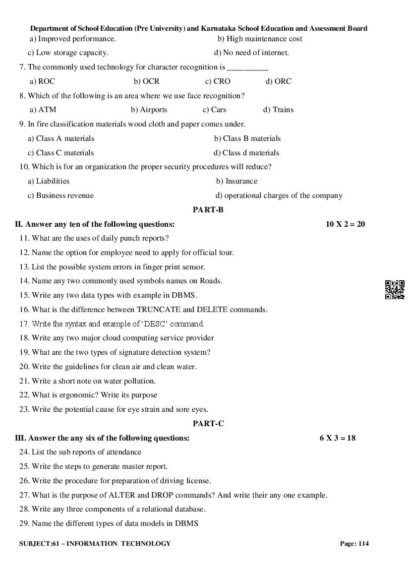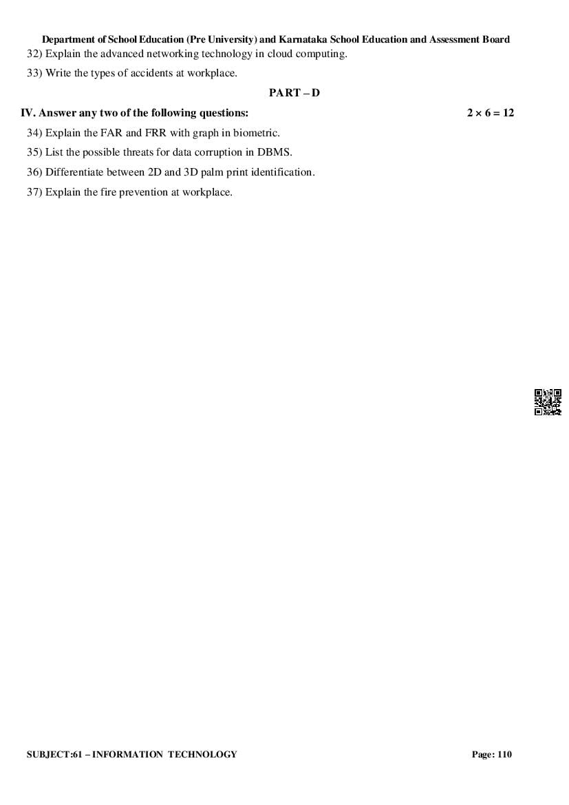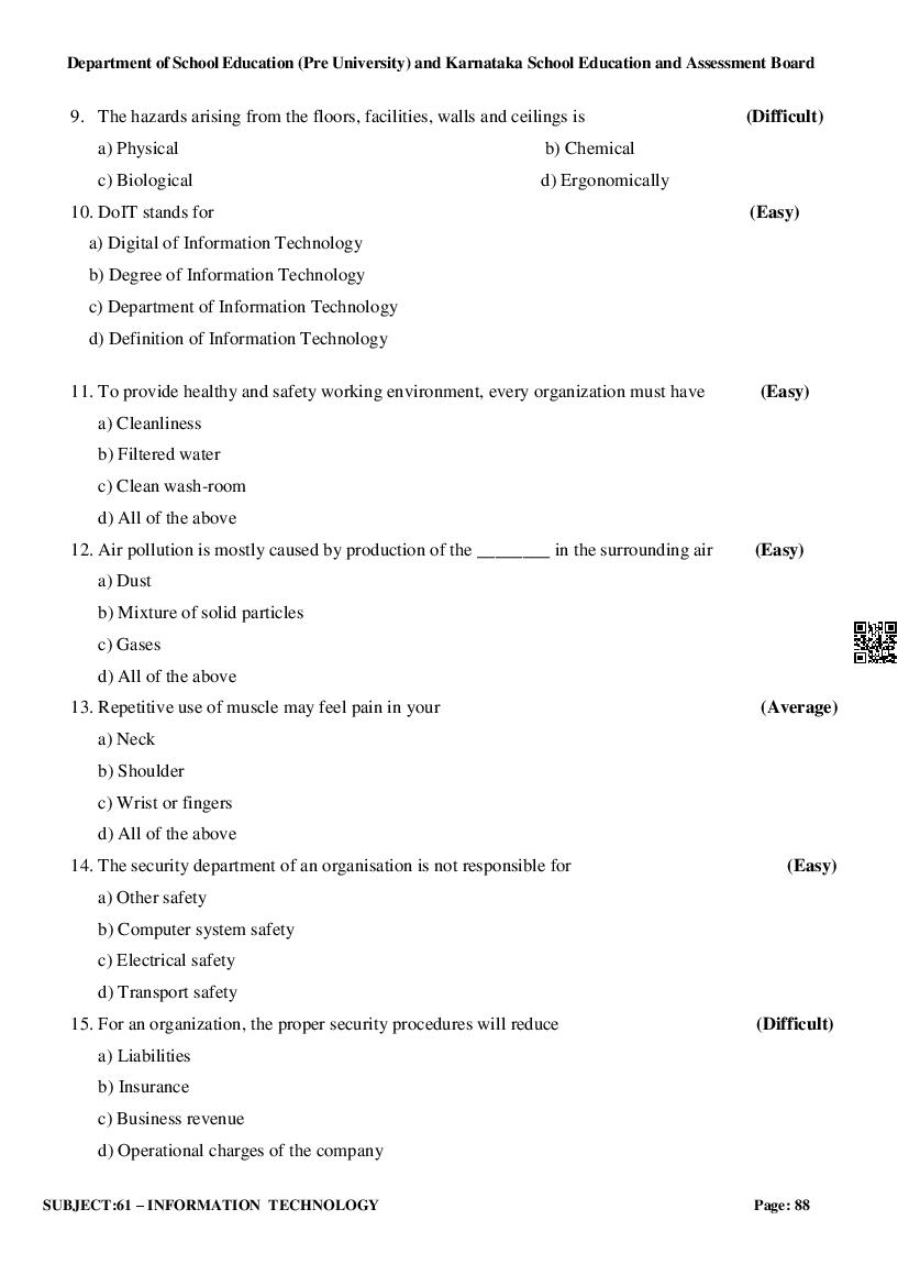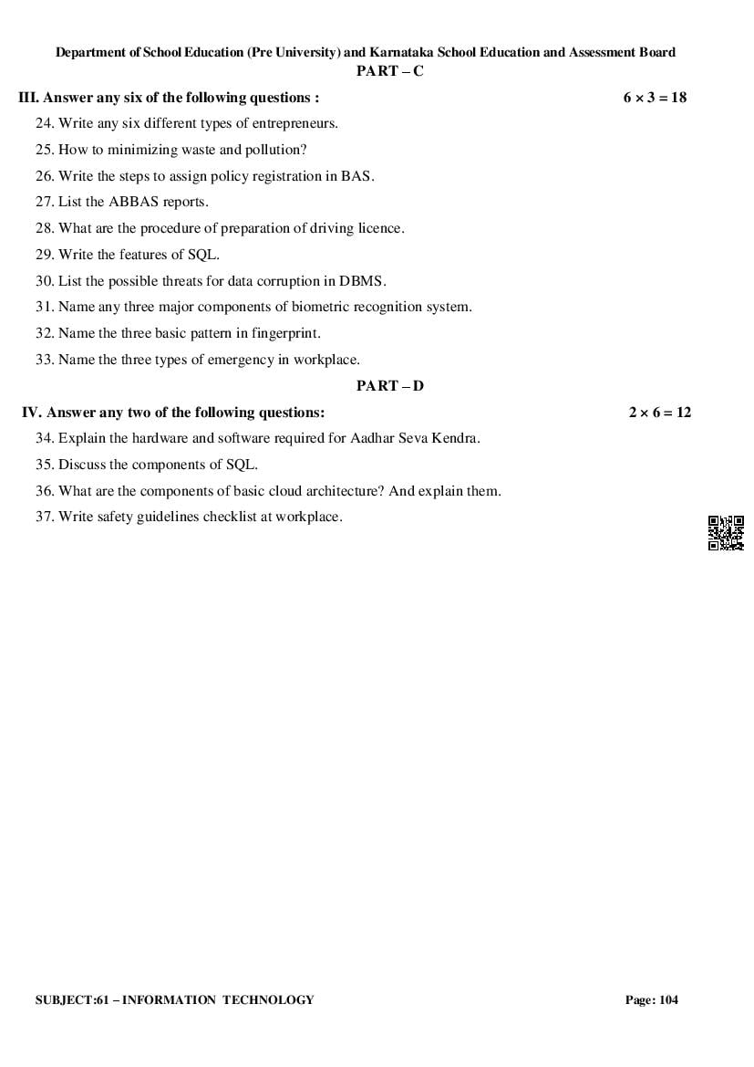 Karnataka 2nd PUC Question Bank for Information Technology View Download