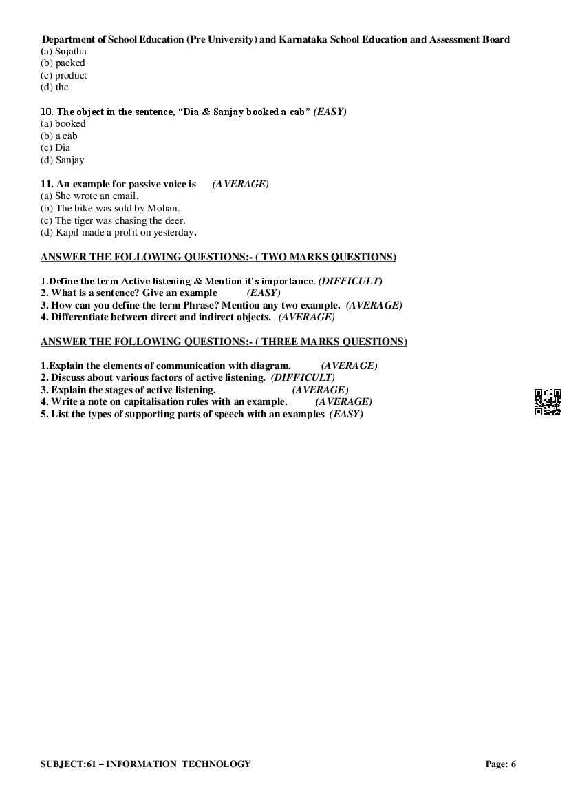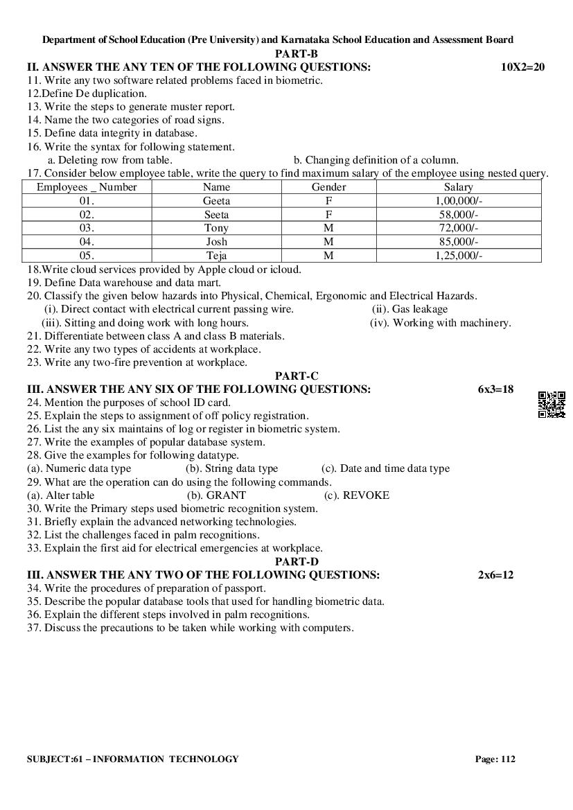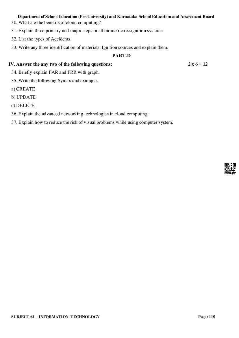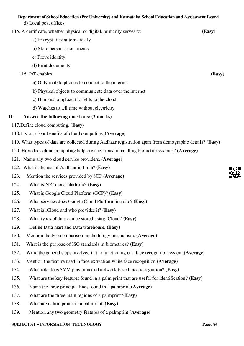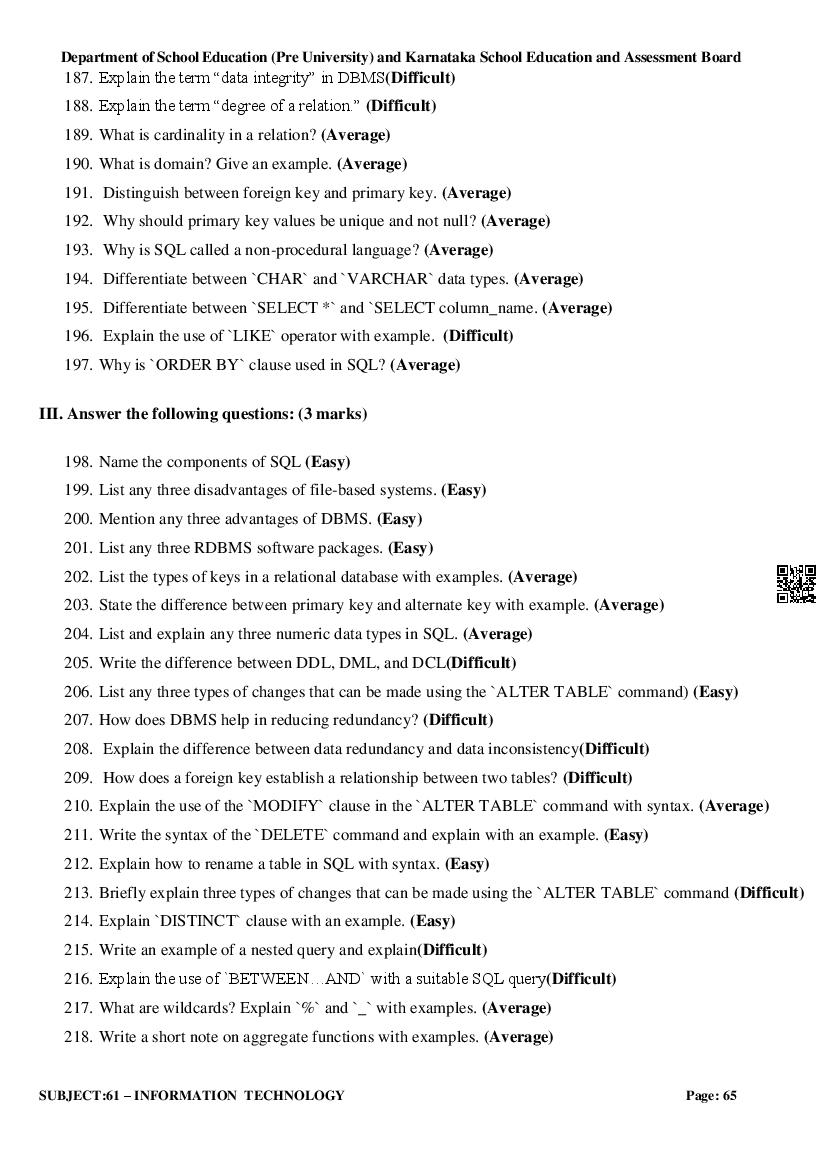 Karnataka 2nd PUC Question Bank for Information Technology View Download