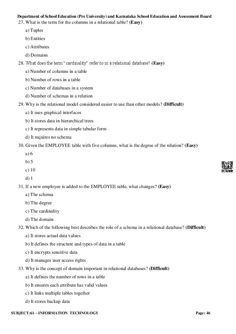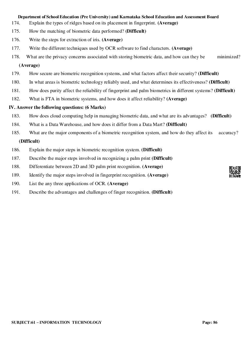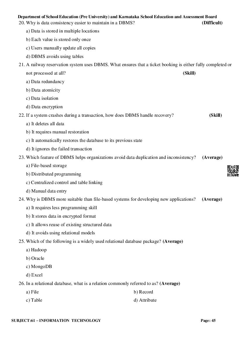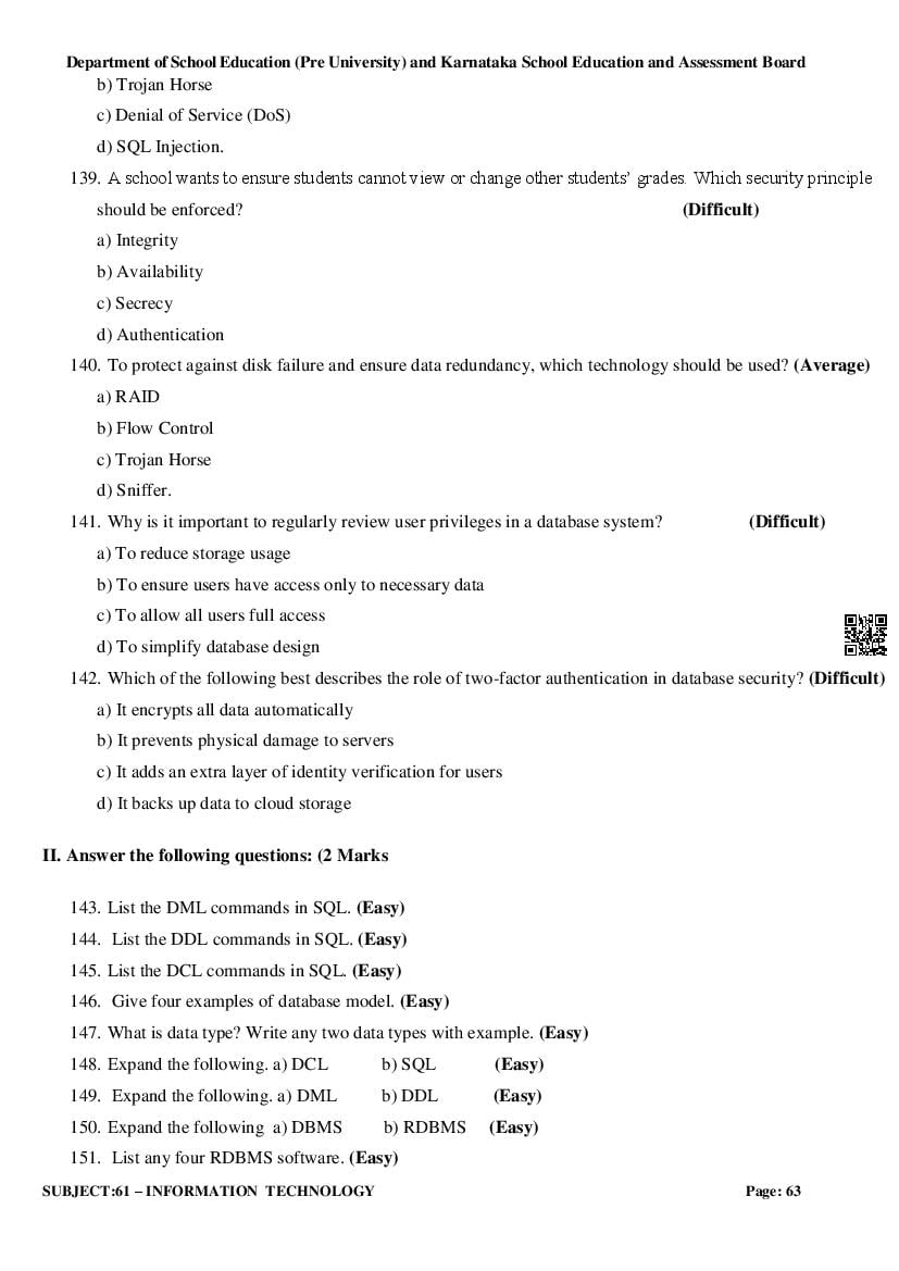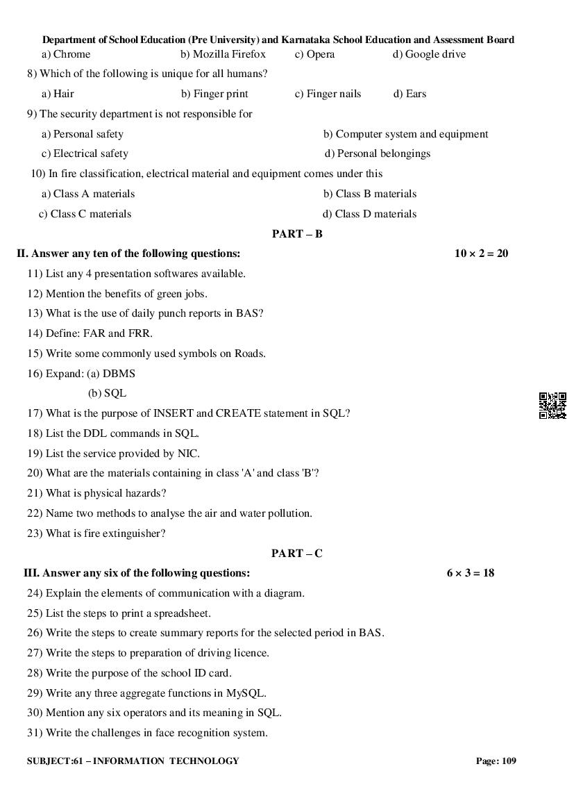 Karnataka 2nd PUC Question Bank for Information Technology View Download