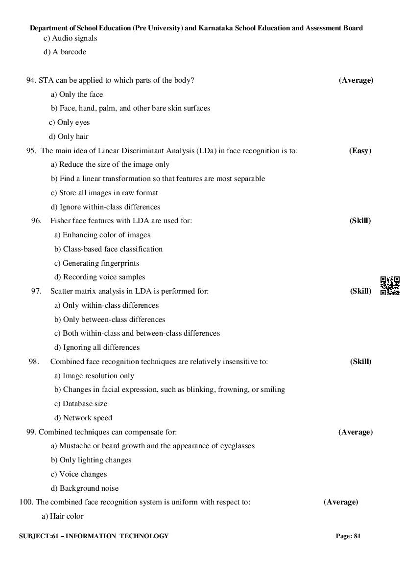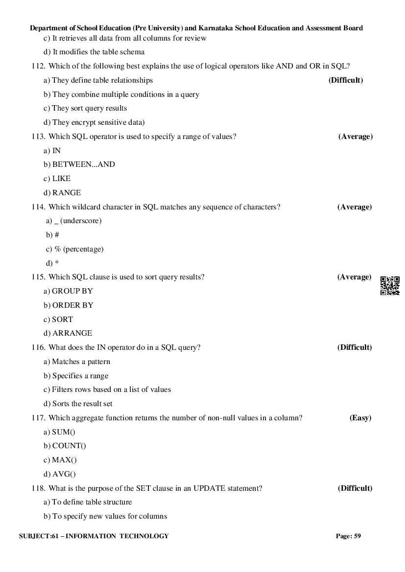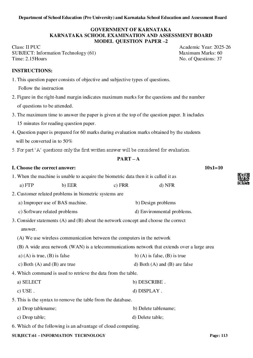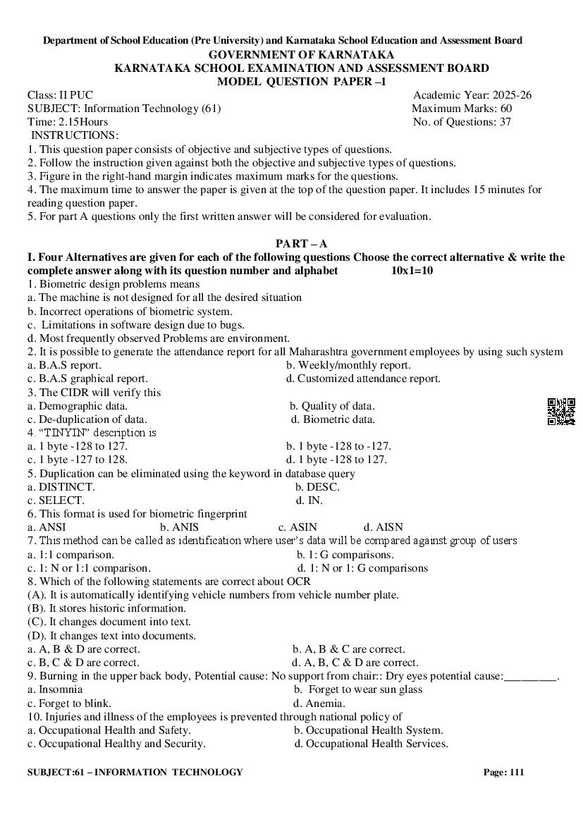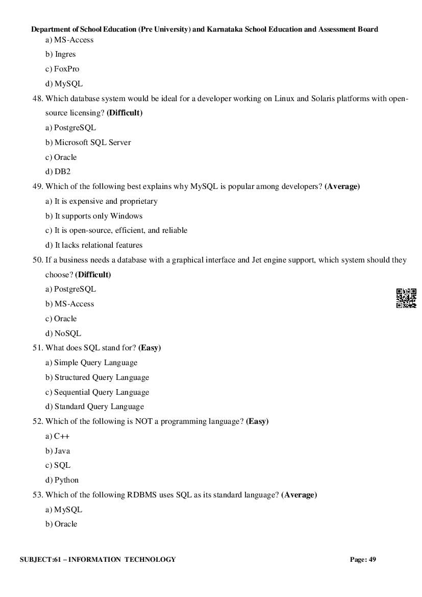 Karnataka 2nd PUC Question Bank for Information Technology View Download