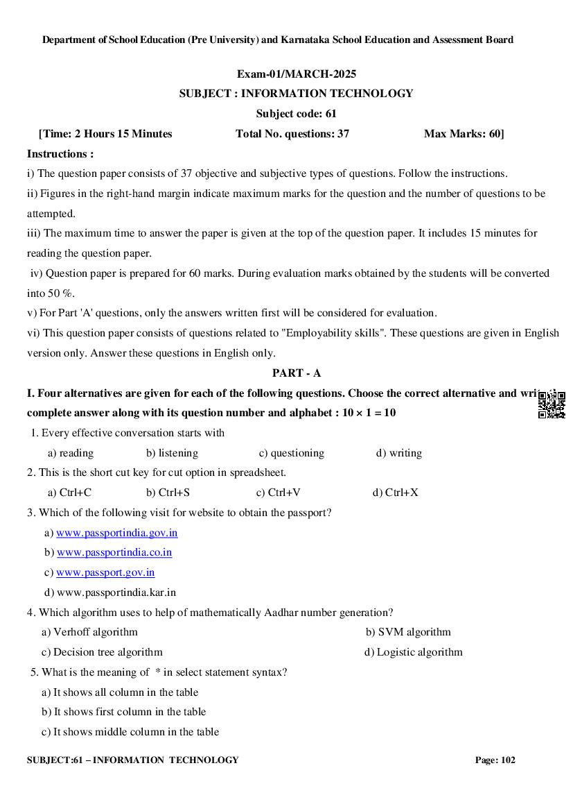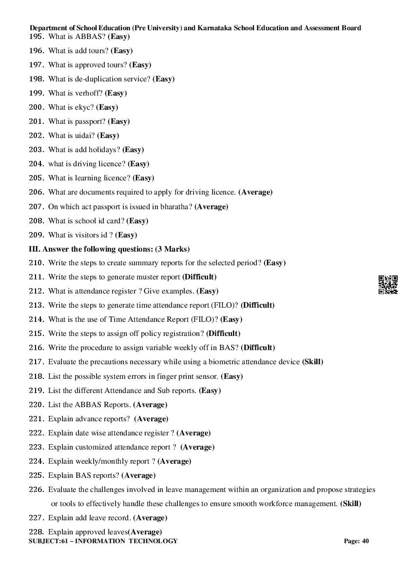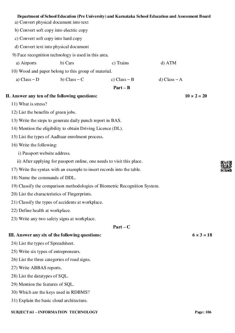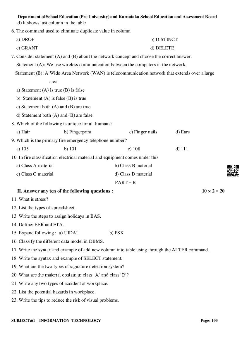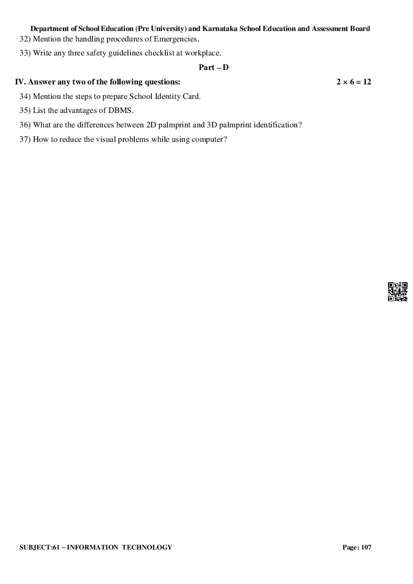 Karnataka State Board II PUC Information Technology Question Bank is available for download in PDF format. Simply click the download option to save the file. We recommend that students solve the provided Information Technology question bank to improve their exam scores and plan their preparation strategies effectively.