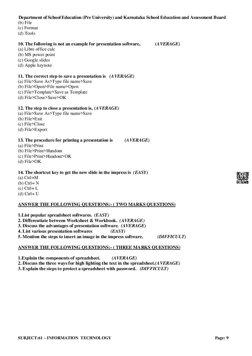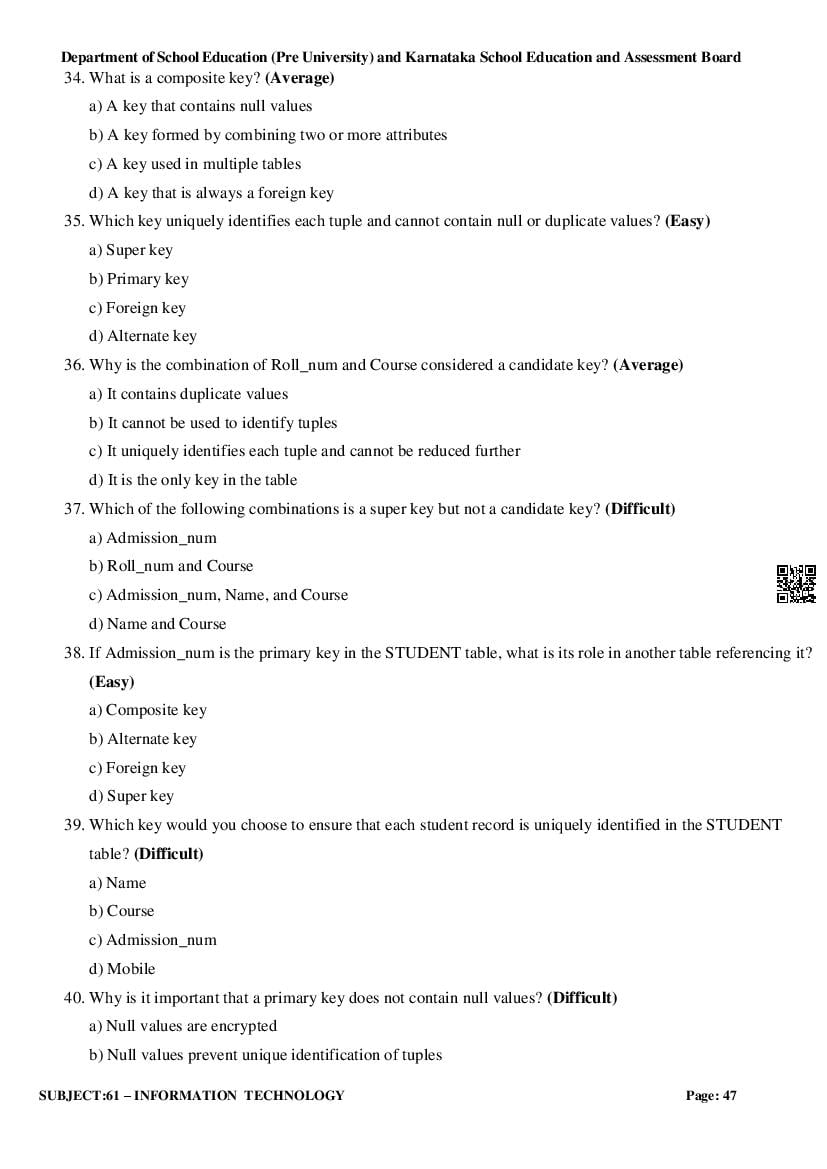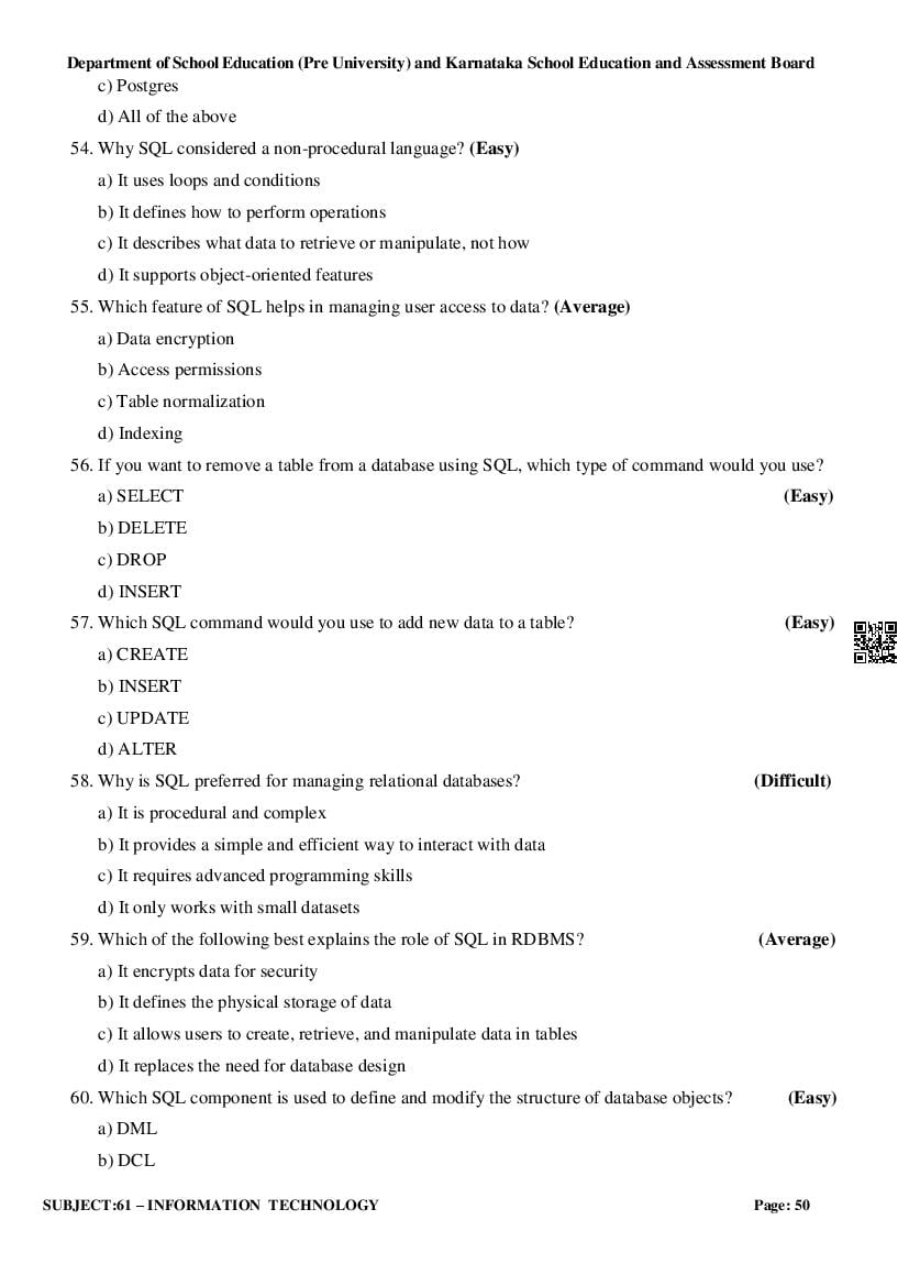 In conclusion, the Karnataka State Board II PUC Information Technology Question Bank is an essential tool for every student aiming for success in their examinations. By consistently practicing with the provided questions, students will not only solidify their understanding but also build confidence in their abilities. Remember, preparation is key to academic achievement, so make the most of these resources and approach your studies with dedication. Best of luck in your upcoming exams!