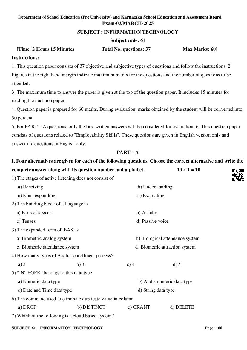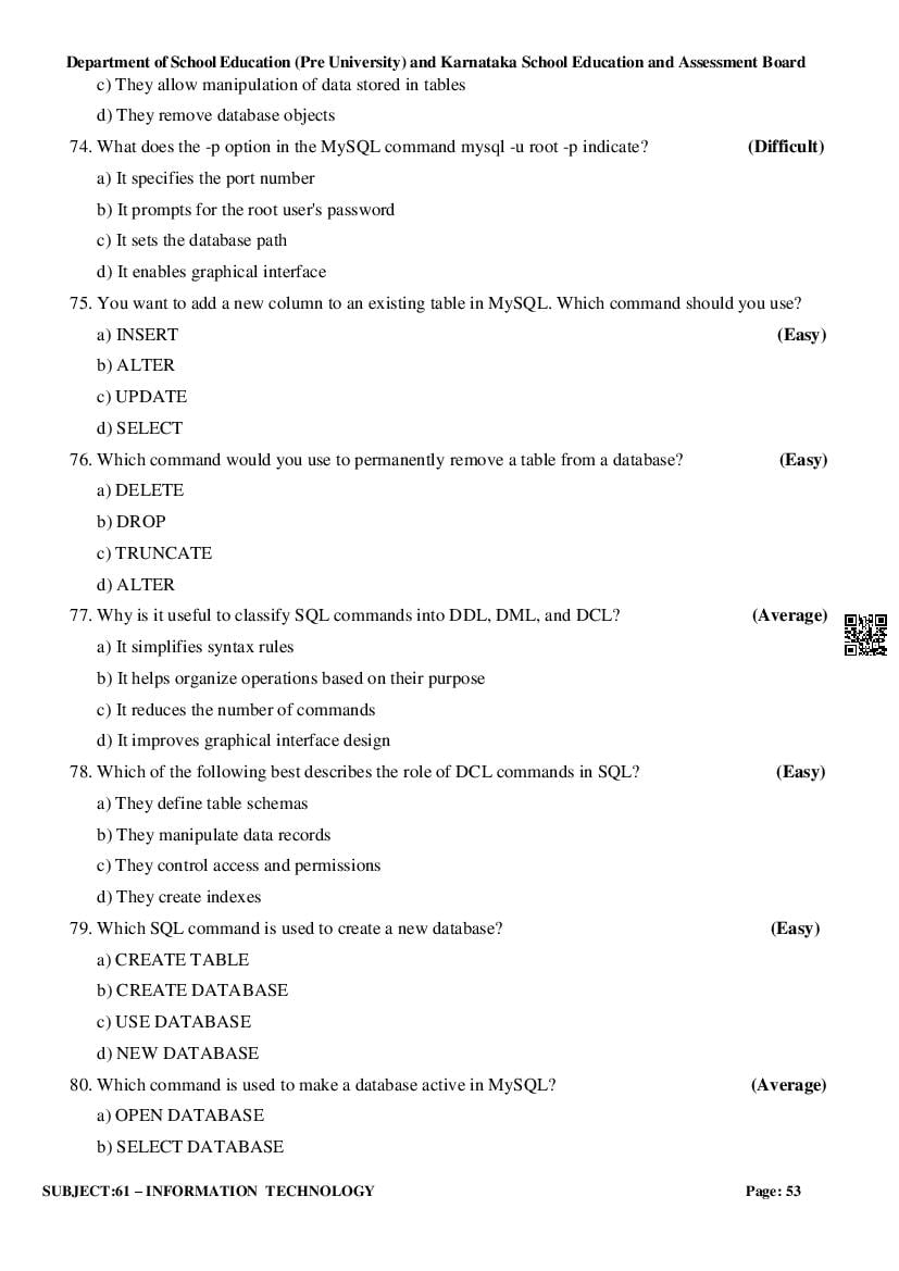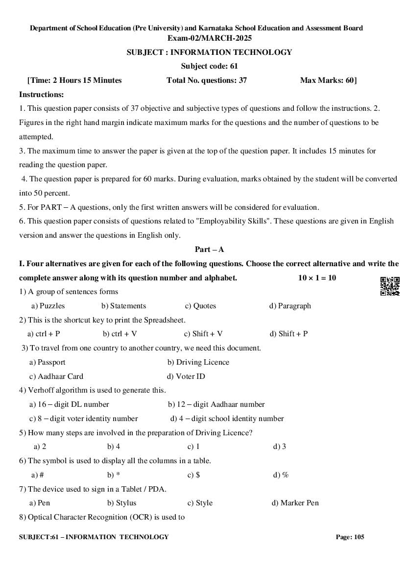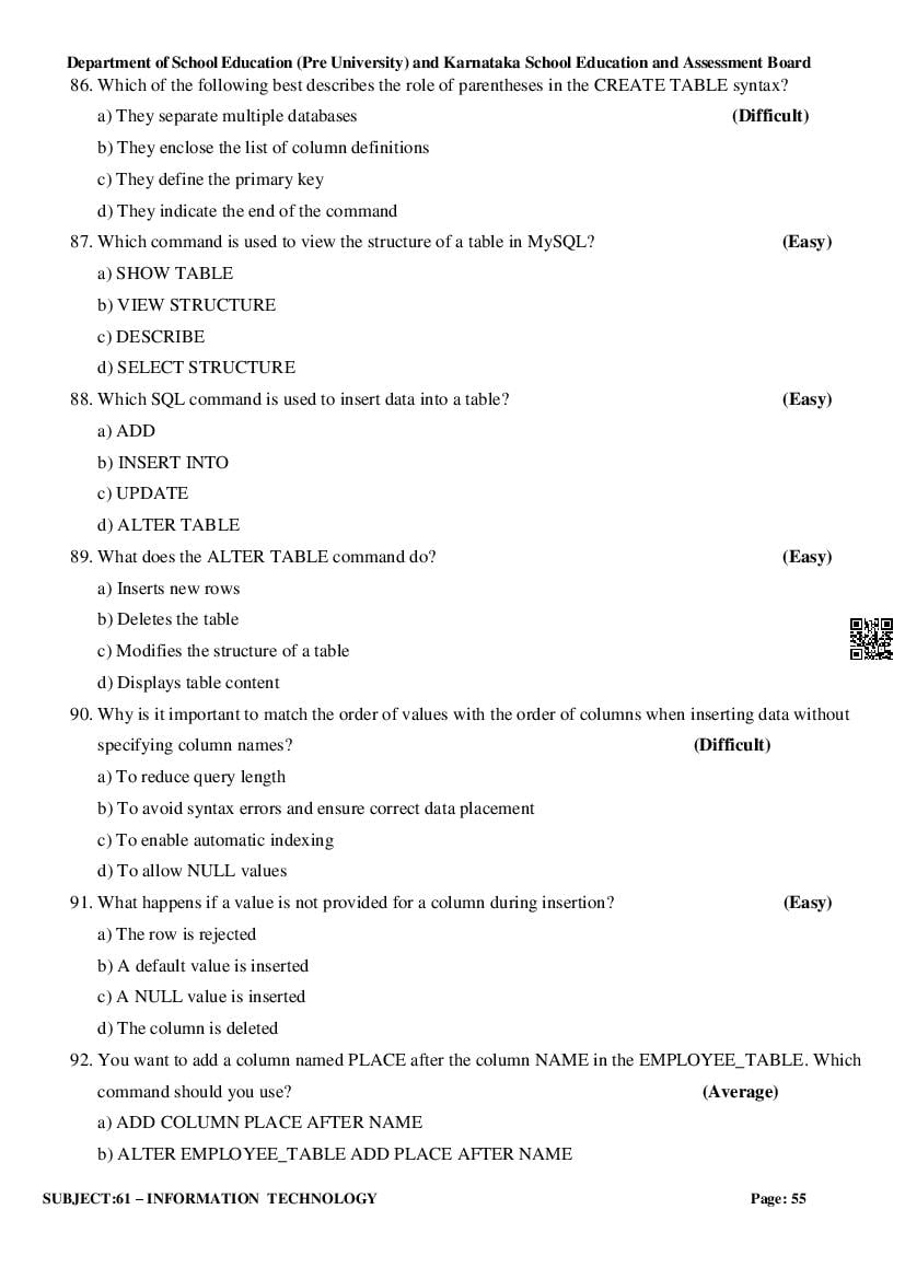In conclusion, the Karnataka State Board II PUC Information Technology Question Bank is an essential tool for every student aiming for success in their examinations. By consistently practicing with the provided questions, students will not only solidify their understanding but also build confidence in their abilities. Remember, preparation is key to academic achievement, so make the most of these resources and approach your studies with dedication. Best of luck in your upcoming exams!