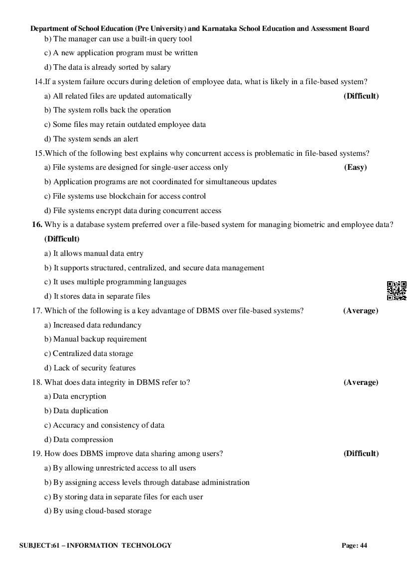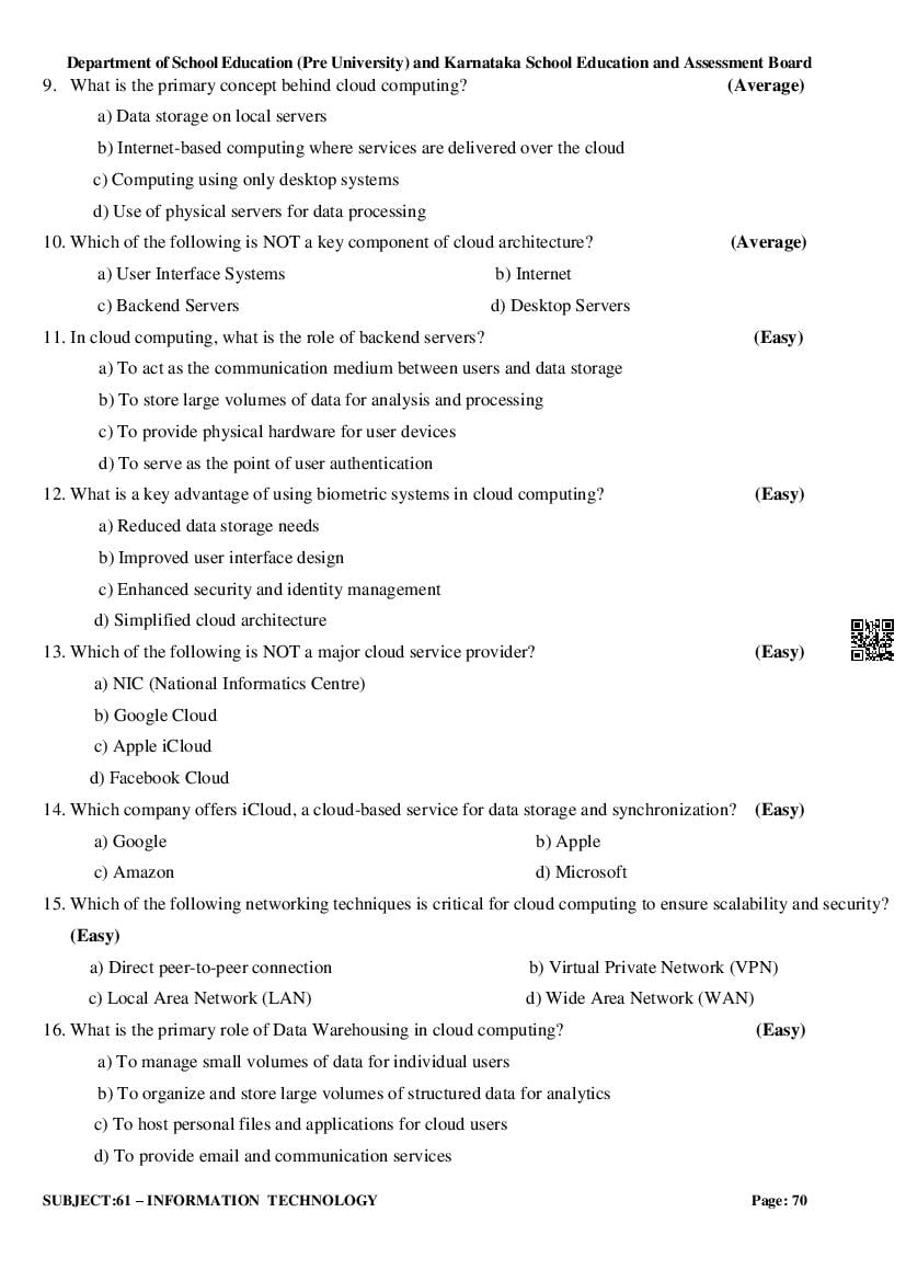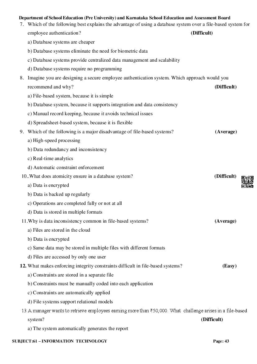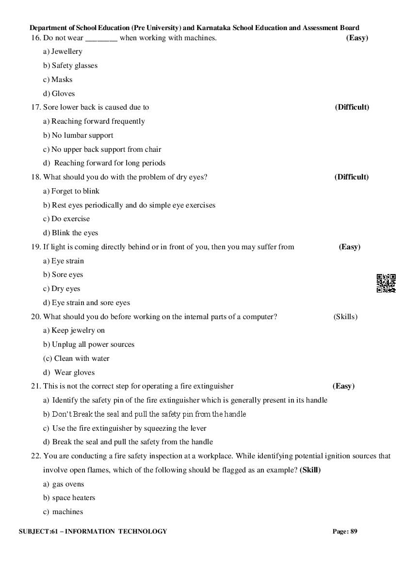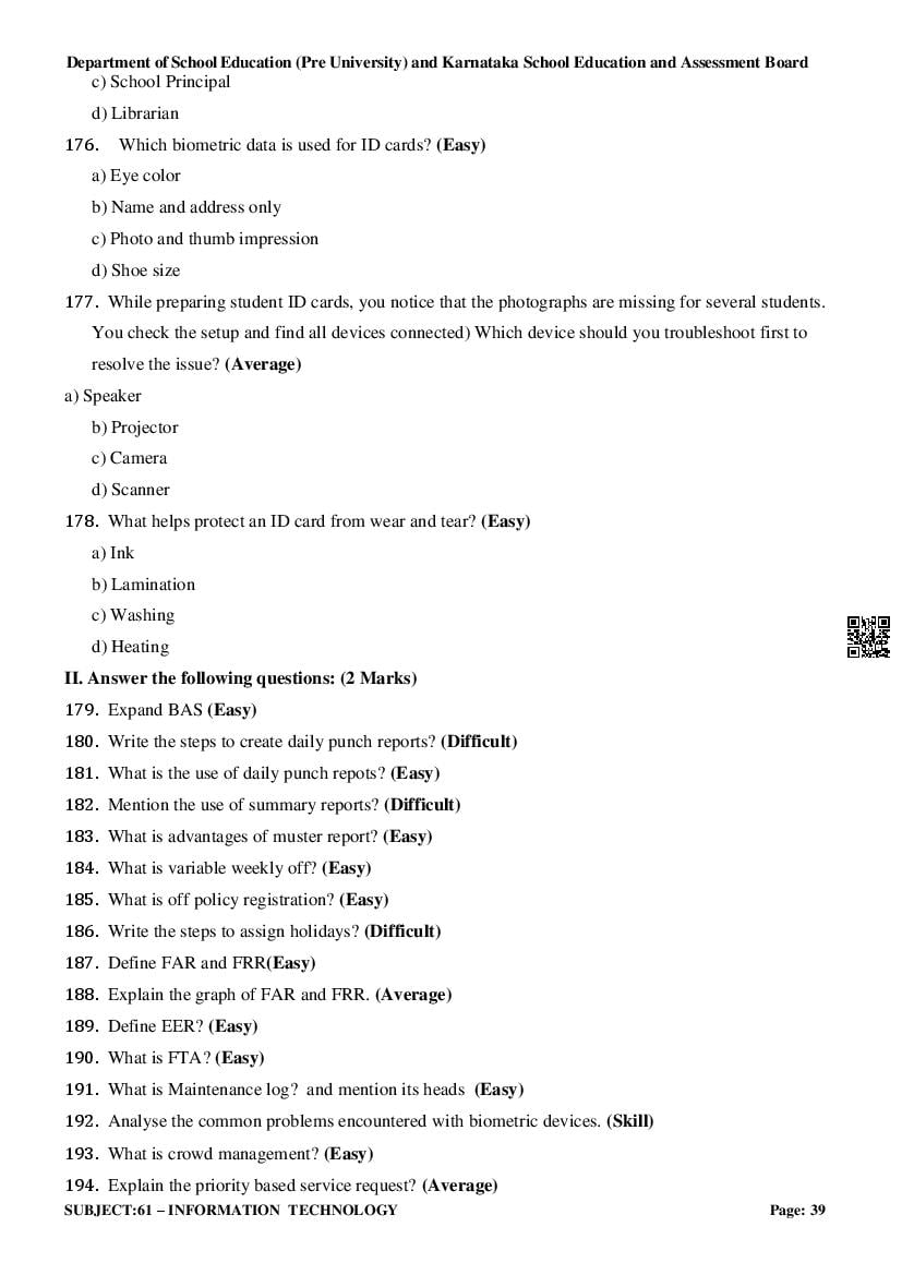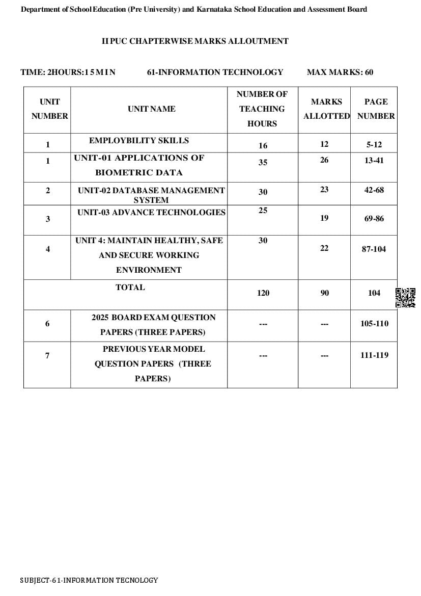 Here are the links for downloading the Information Technology Question Bank. Candidates can utilize these karnataka 12 study resources to assess their current performance levels and identify areas for improvement. This will assist students in recognizing their strengths and weaknesses, contributing to more effective learning.