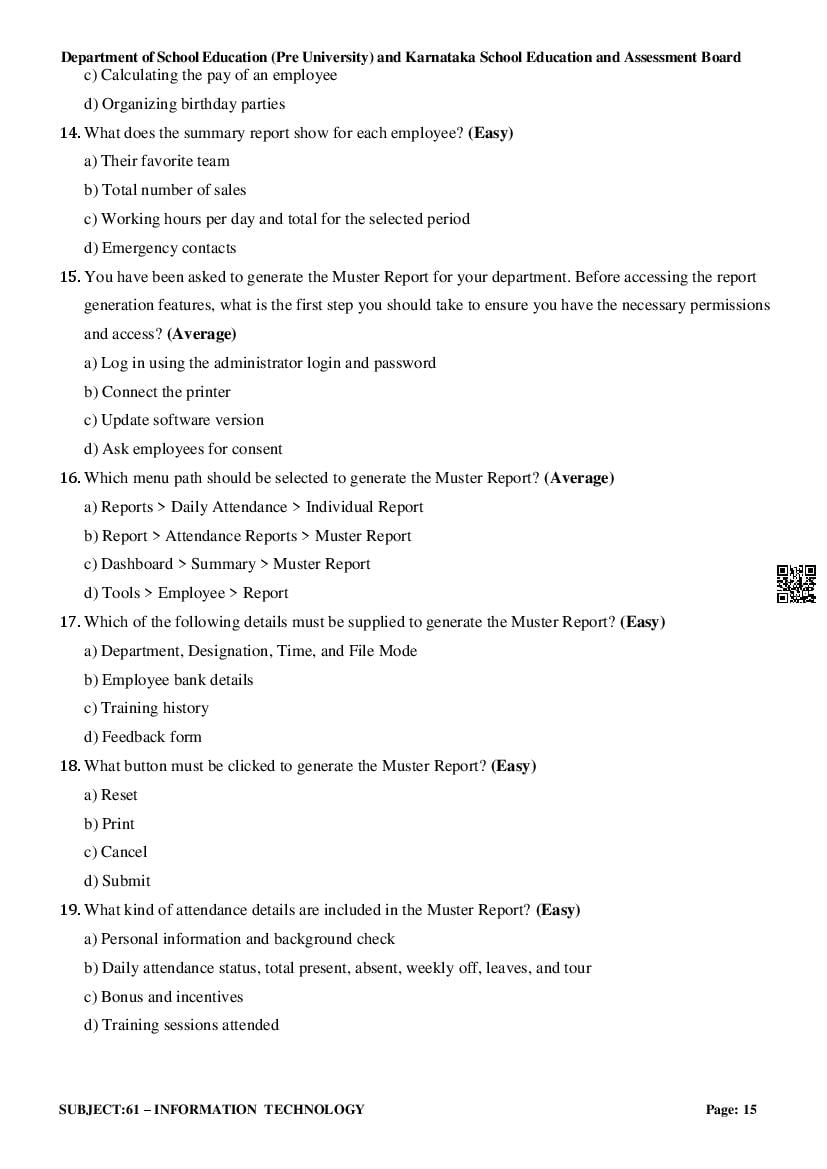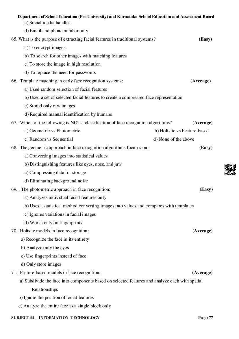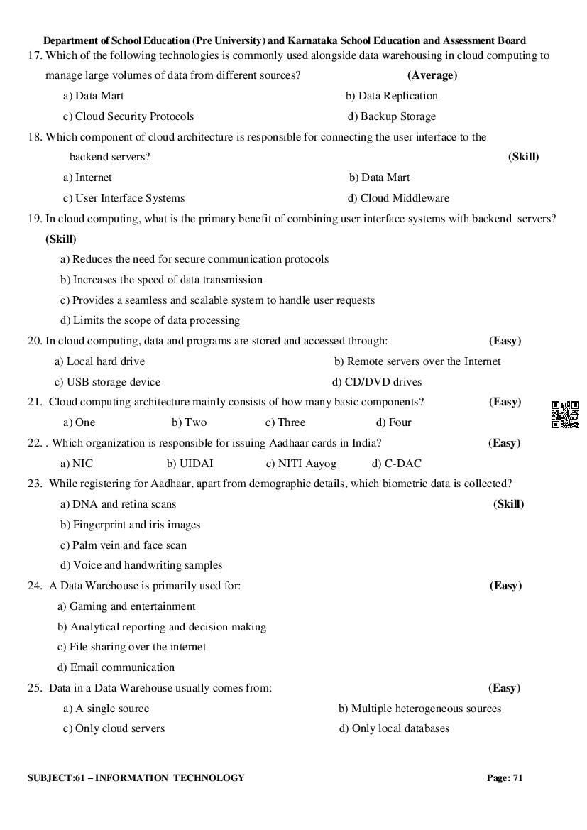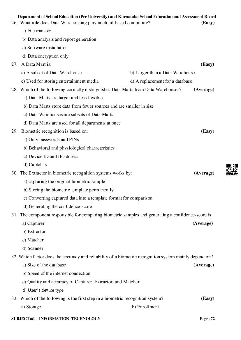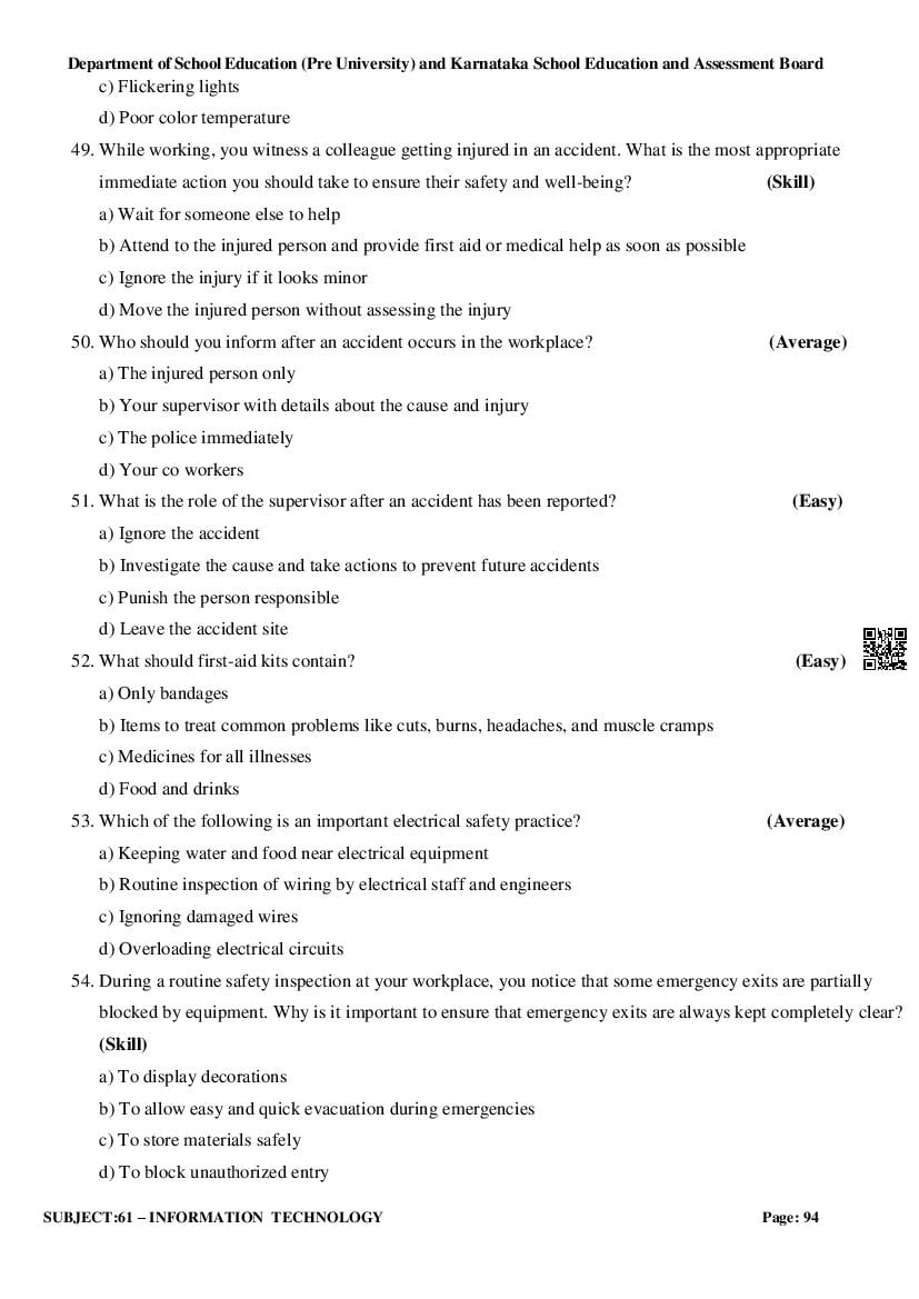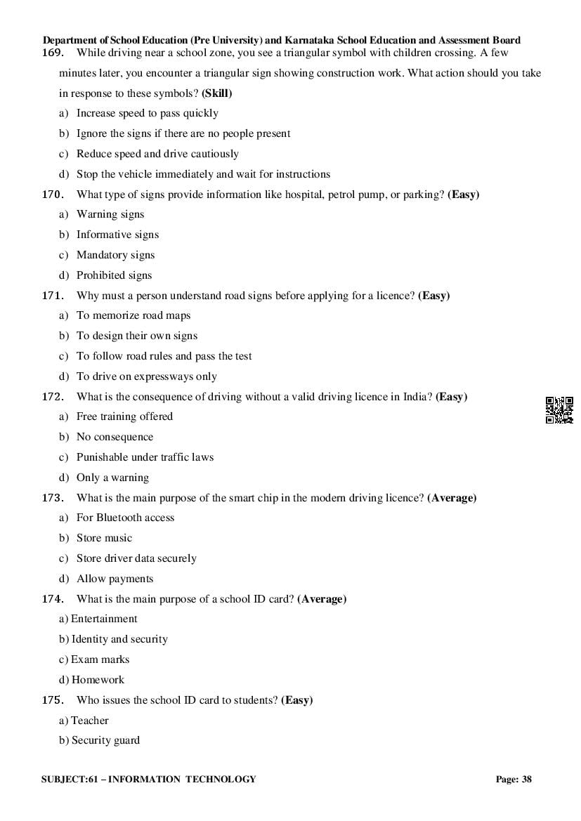 Here are the links for downloading the Information Technology Question Bank. Candidates can utilize these karnataka 12 study resources to assess their current performance levels and identify areas for improvement. This will assist students in recognizing their strengths and weaknesses, contributing to more effective learning.