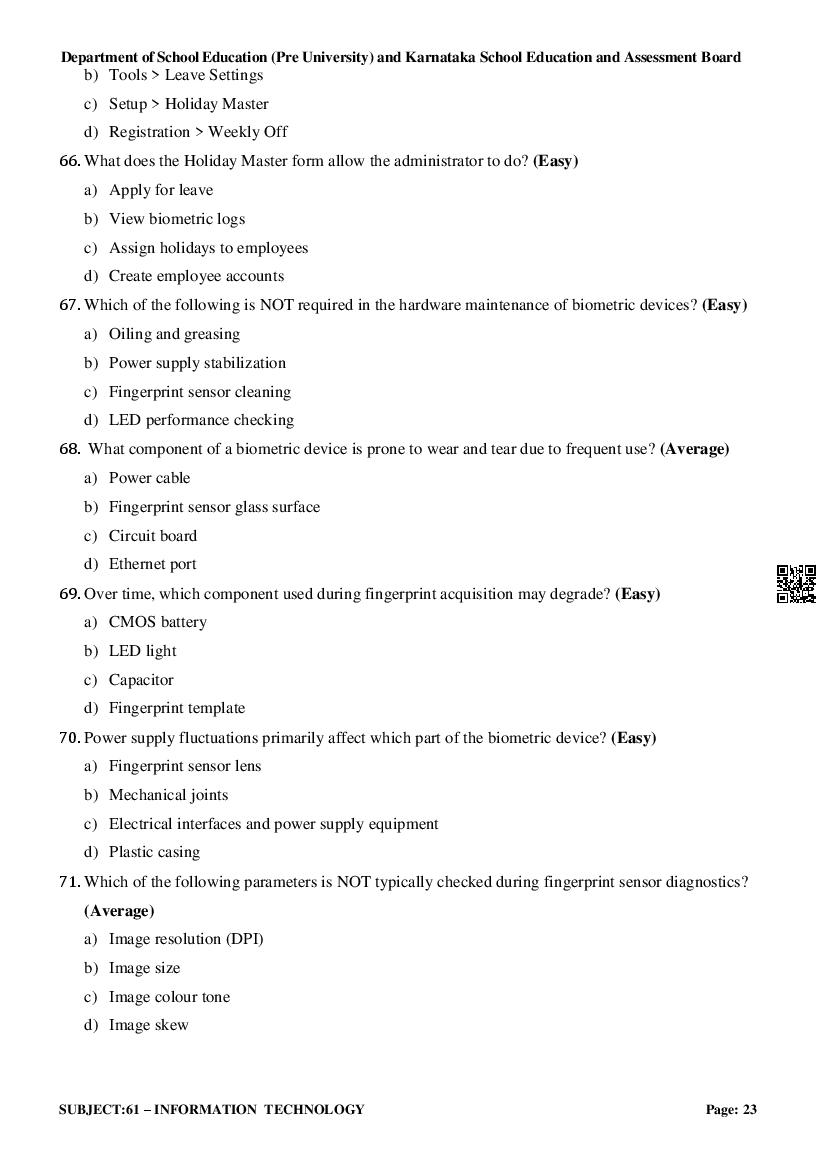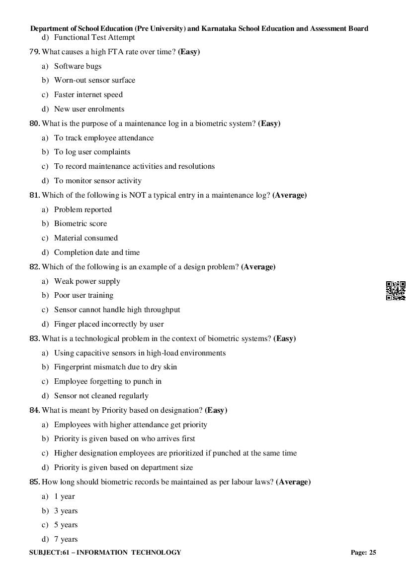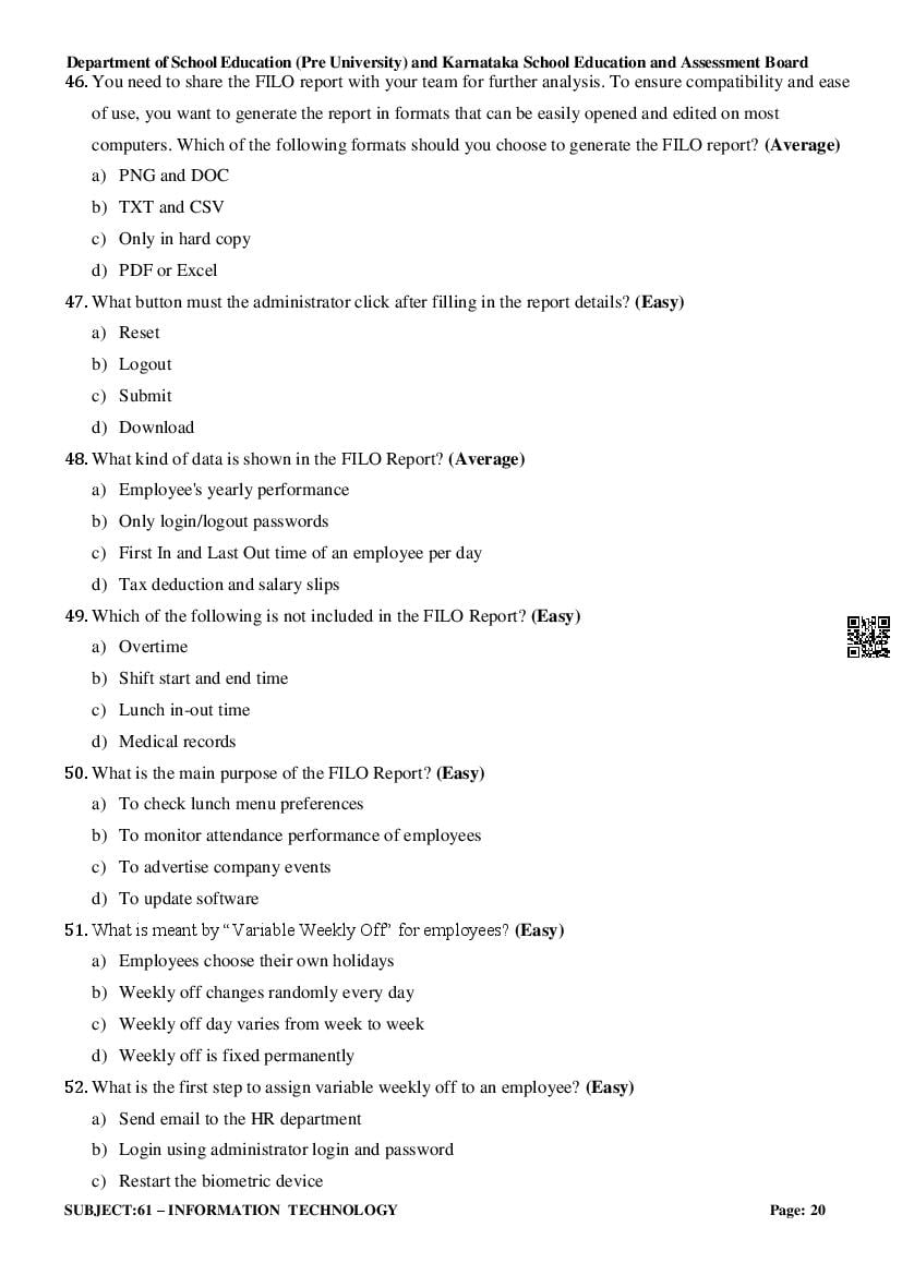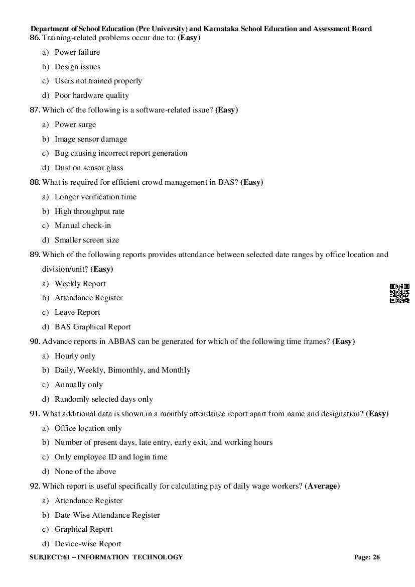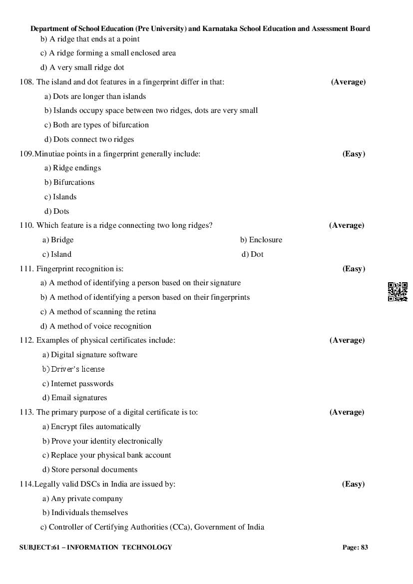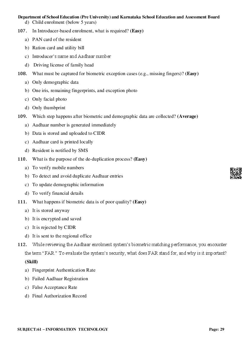 Here are the links for downloading the Information Technology Question Bank. Candidates can utilize these karnataka 12 study resources to assess their current performance levels and identify areas for improvement. This will assist students in recognizing their strengths and weaknesses, contributing to more effective learning.