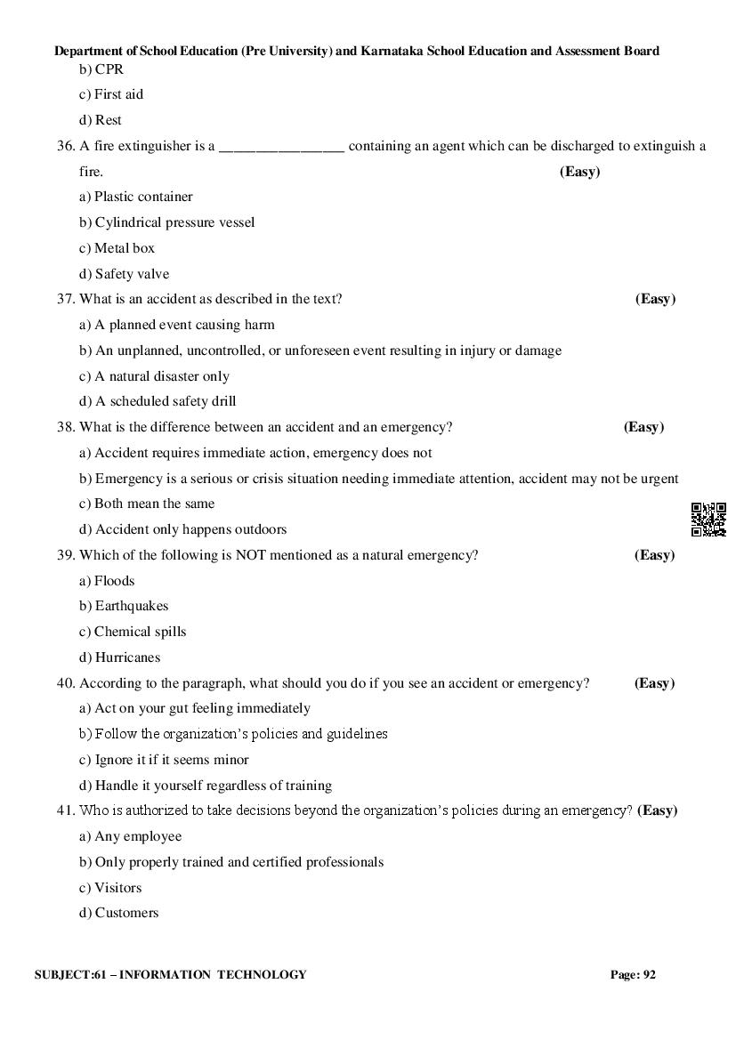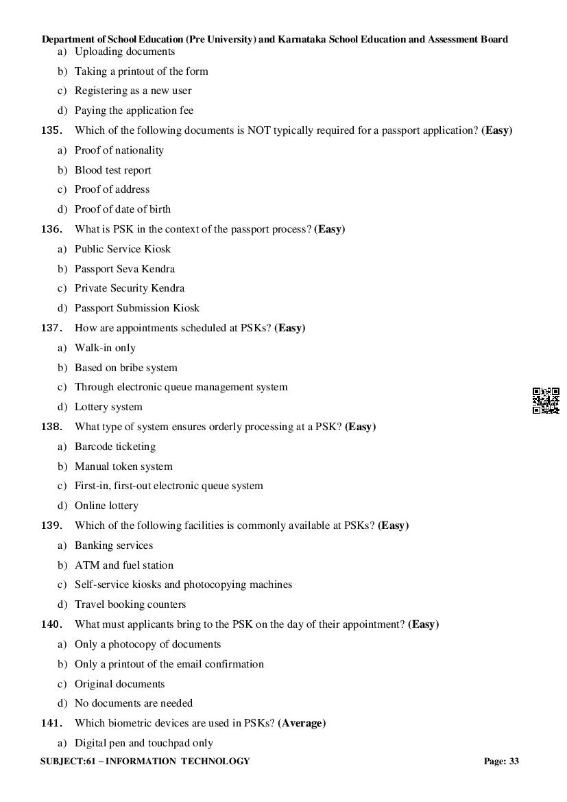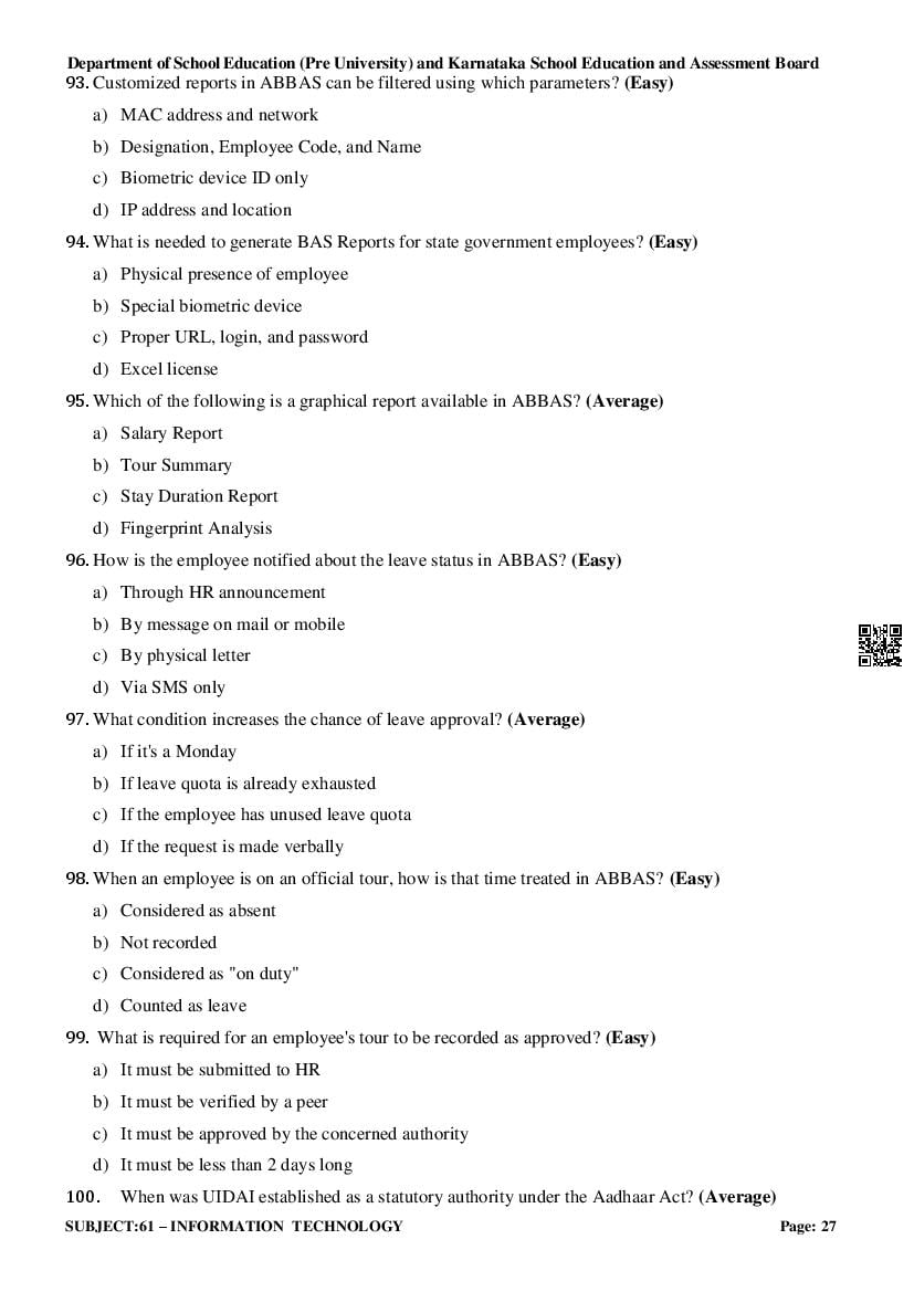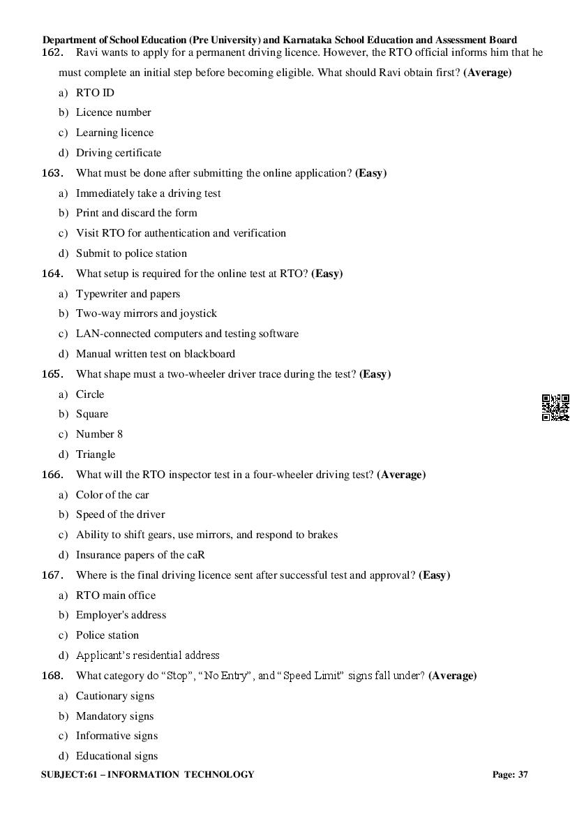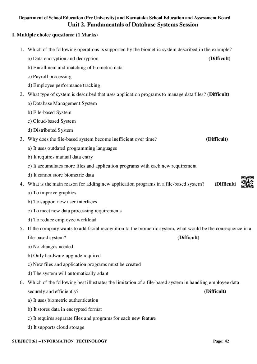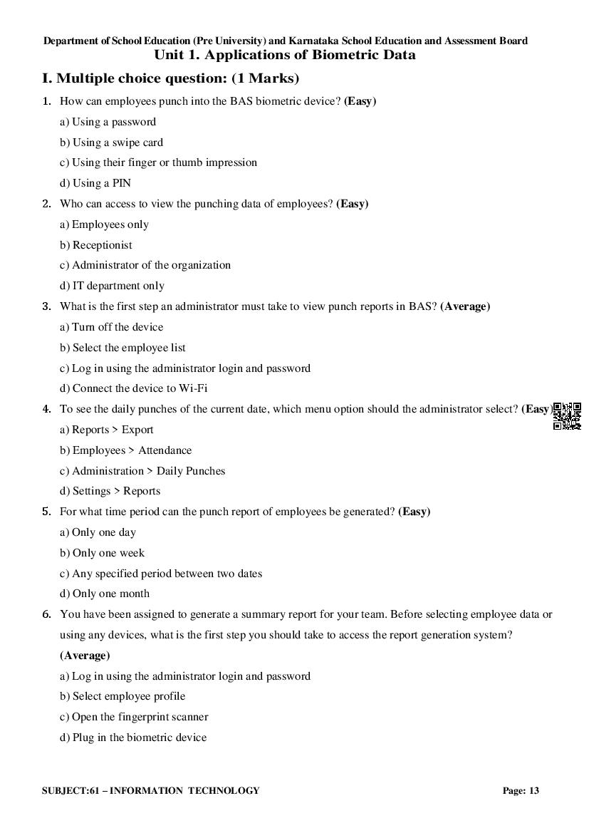 Here are the links for downloading the Information Technology Question Bank. Candidates can utilize these karnataka 12 study resources to assess their current performance levels and identify areas for improvement. This will assist students in recognizing their strengths and weaknesses, contributing to more effective learning.