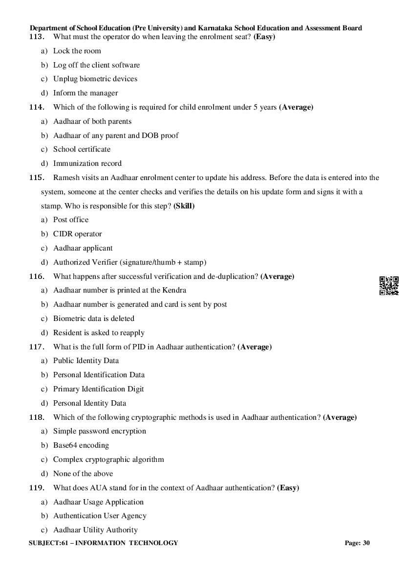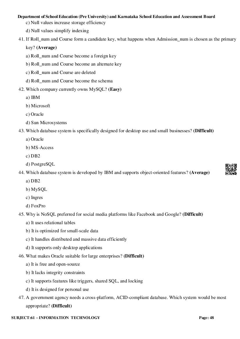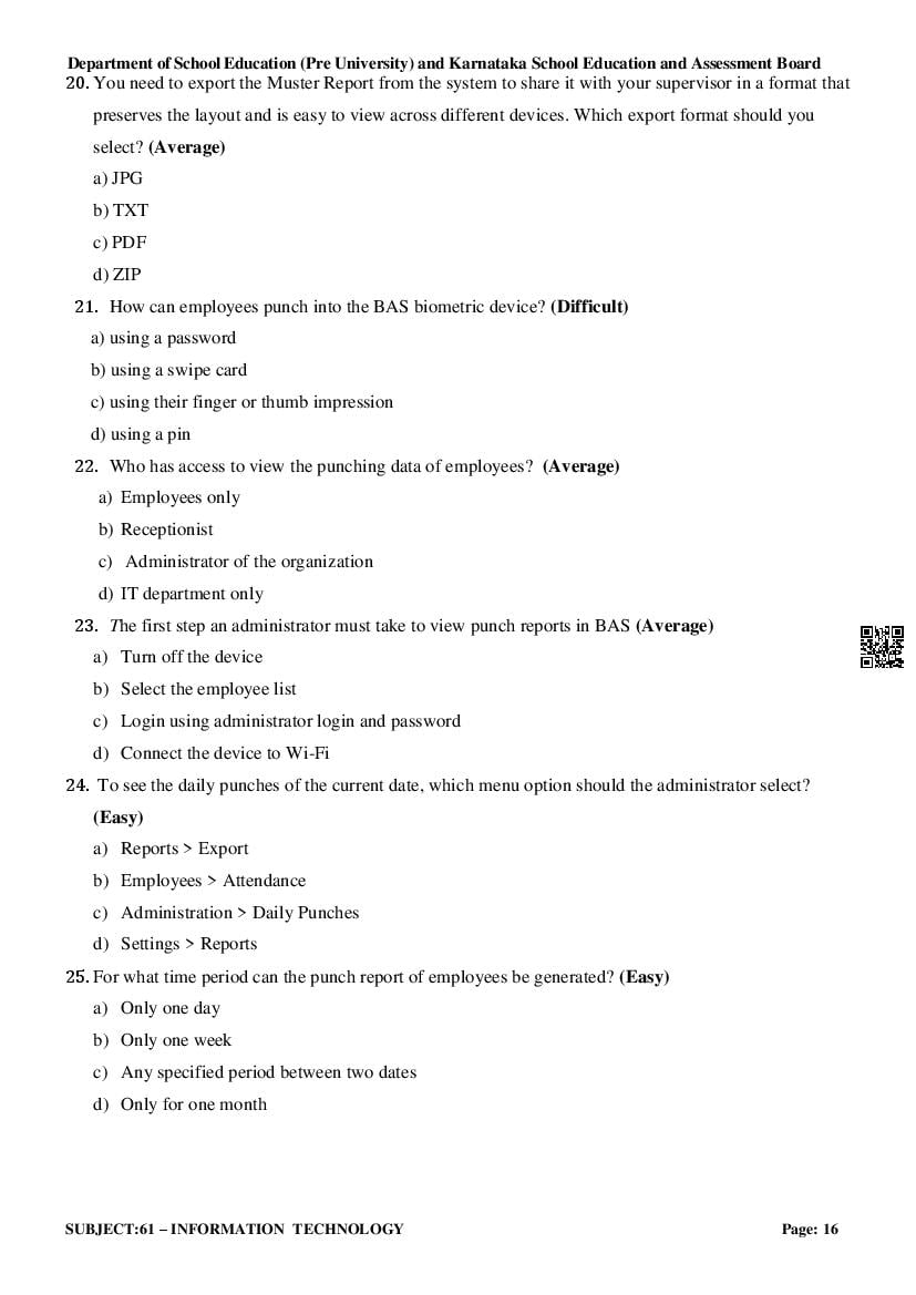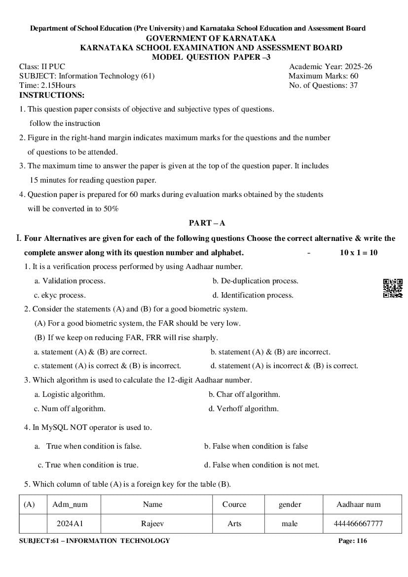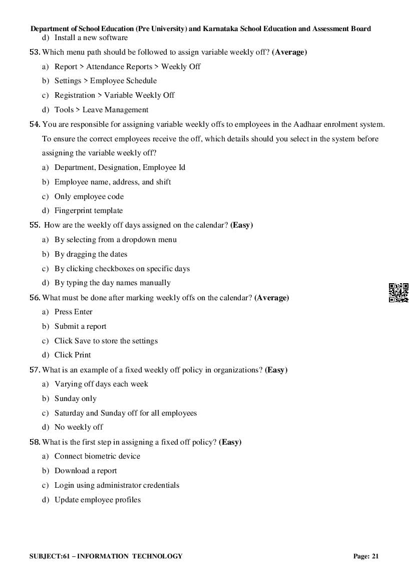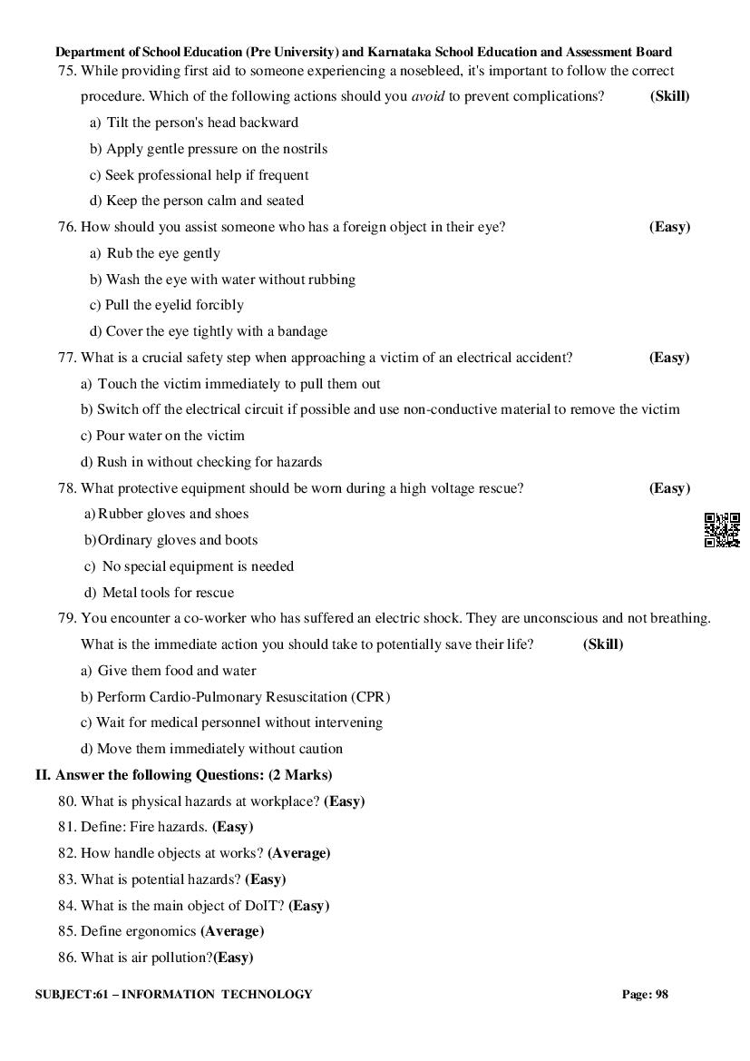 Here are the links for downloading the Information Technology Question Bank. Candidates can utilize these karnataka 12 study resources to assess their current performance levels and identify areas for improvement. This will assist students in recognizing their strengths and weaknesses, contributing to more effective learning.