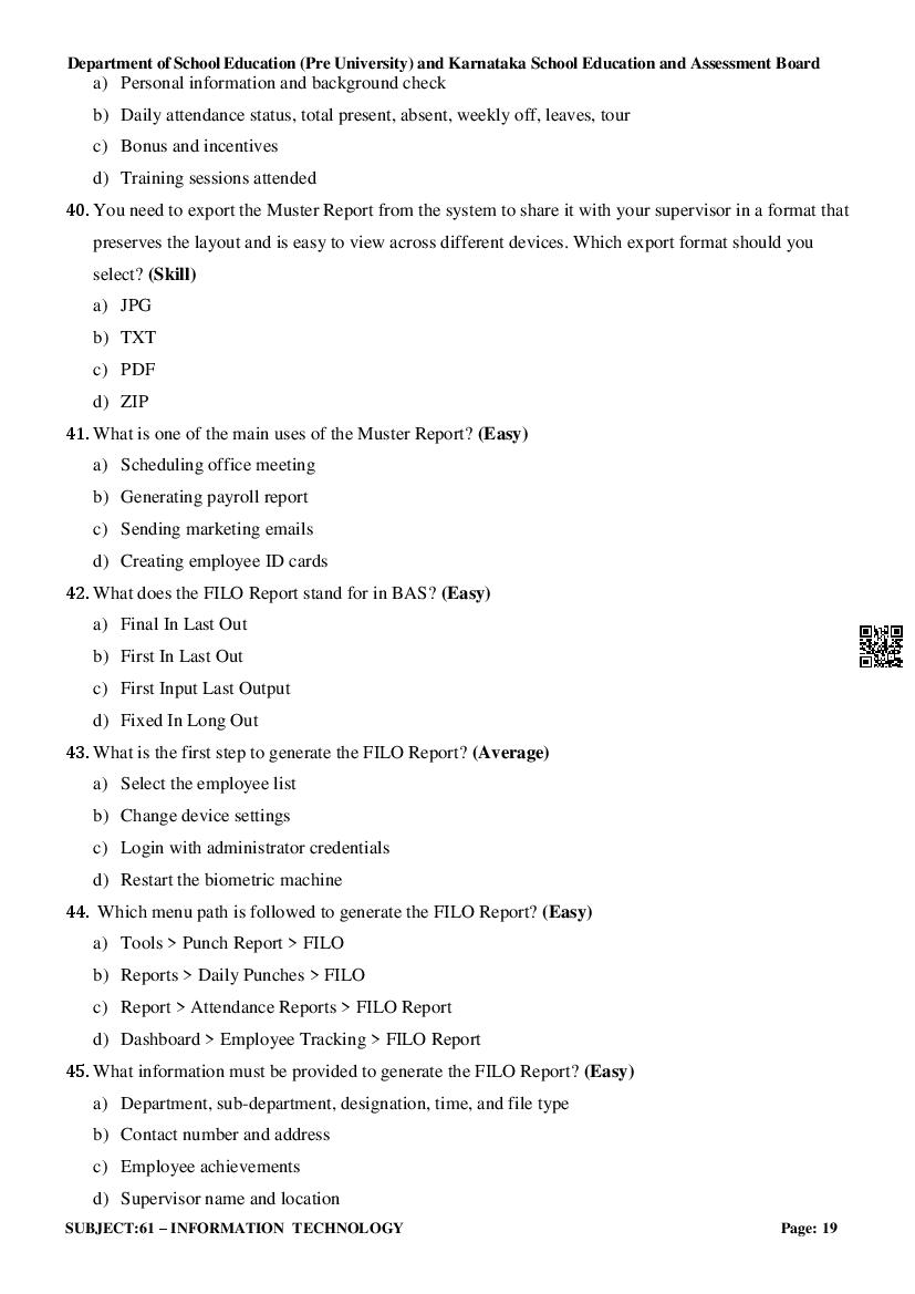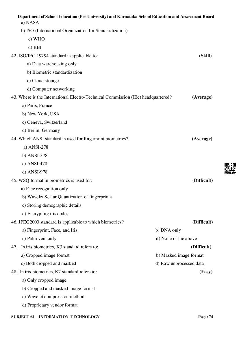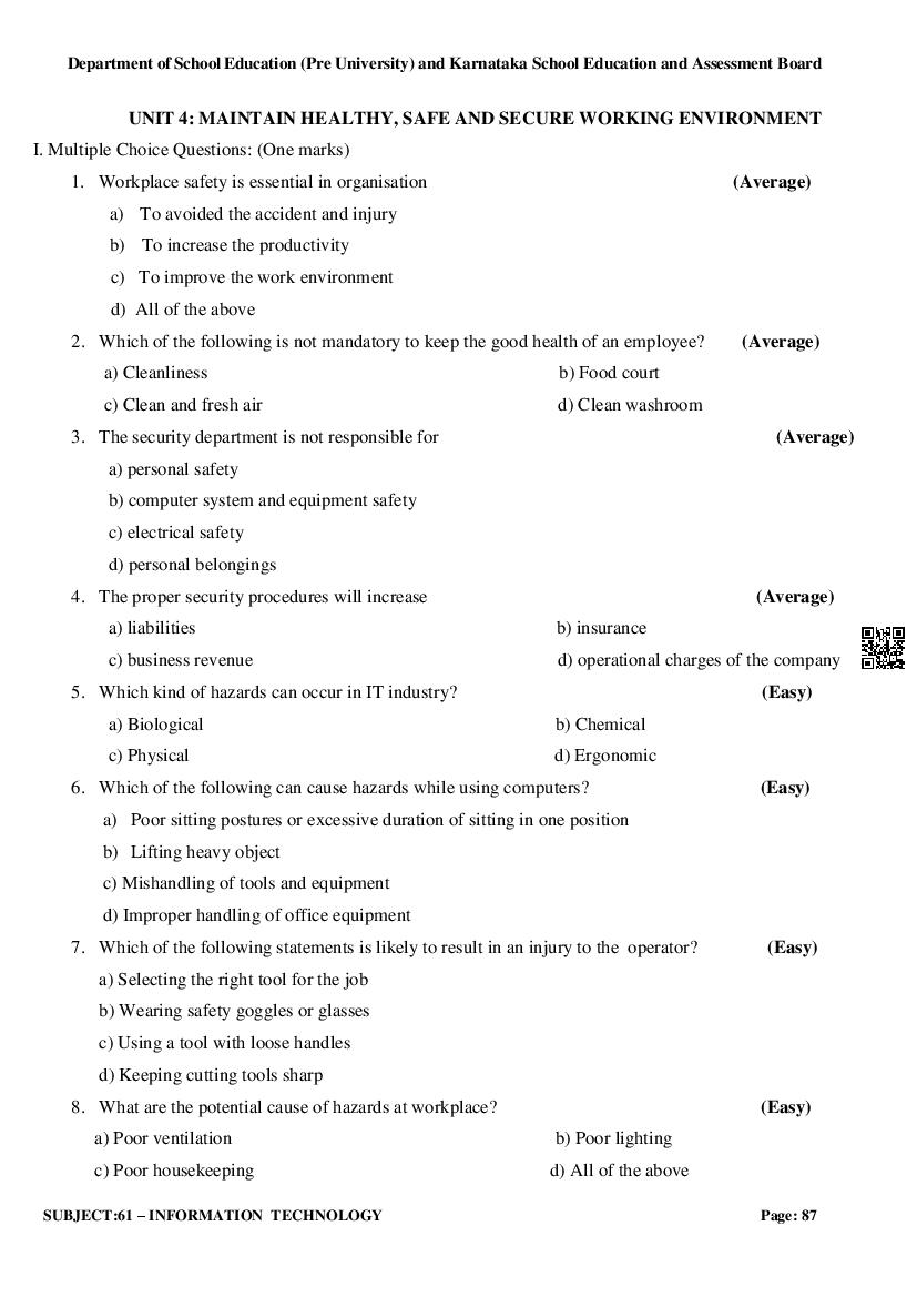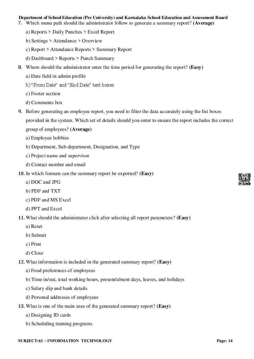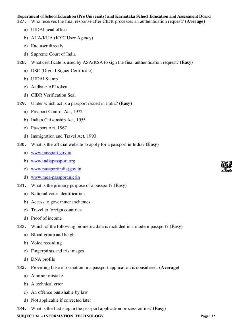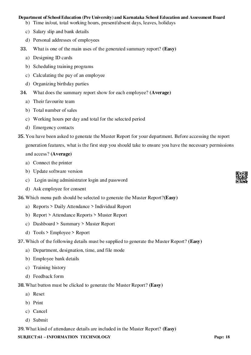 Here are the links for downloading the Information Technology Question Bank. Candidates can utilize these karnataka 12 study resources to assess their current performance levels and identify areas for improvement. This will assist students in recognizing their strengths and weaknesses, contributing to more effective learning.