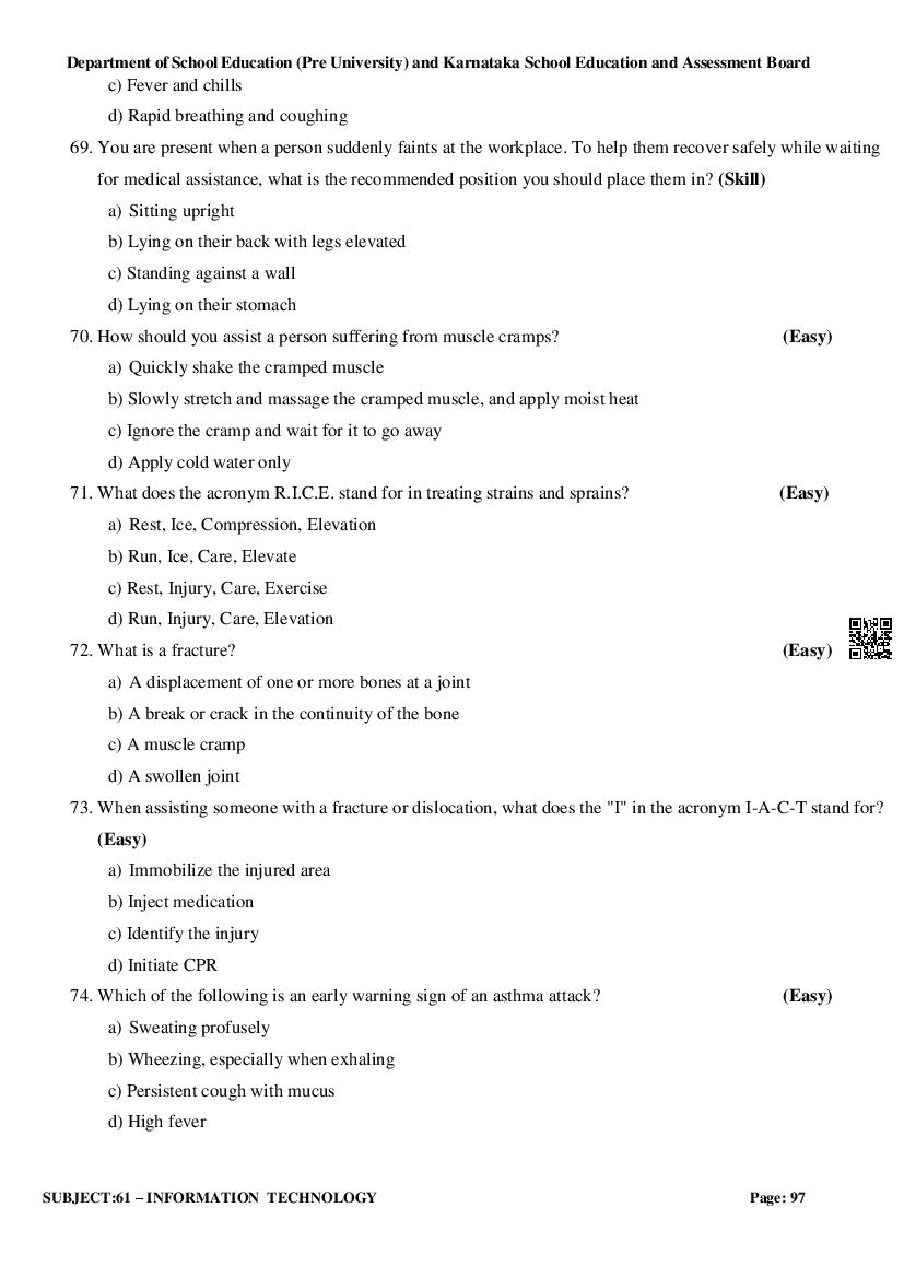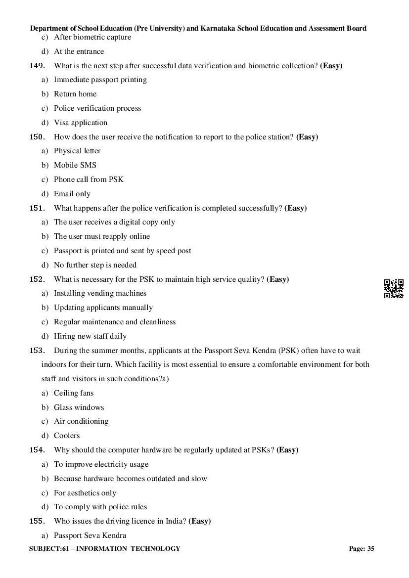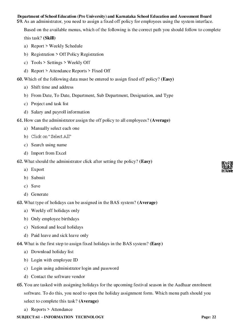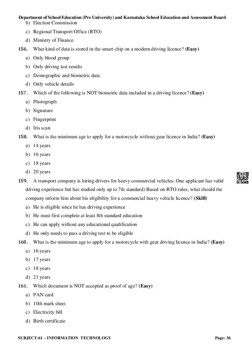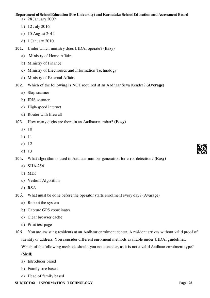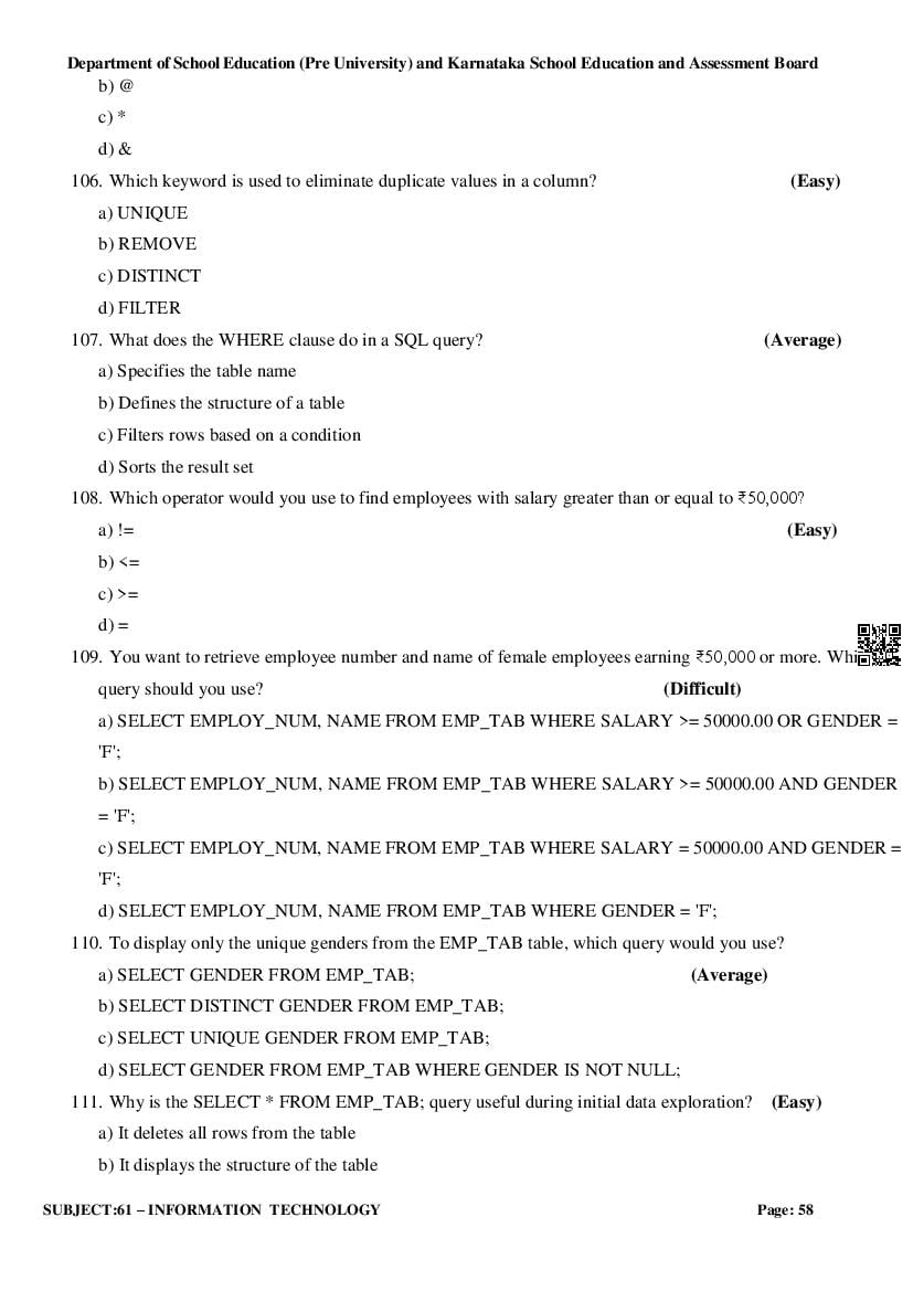 Here are the links for downloading the Information Technology Question Bank. Candidates can utilize these karnataka 12 study resources to assess their current performance levels and identify areas for improvement. This will assist students in recognizing their strengths and weaknesses, contributing to more effective learning.
