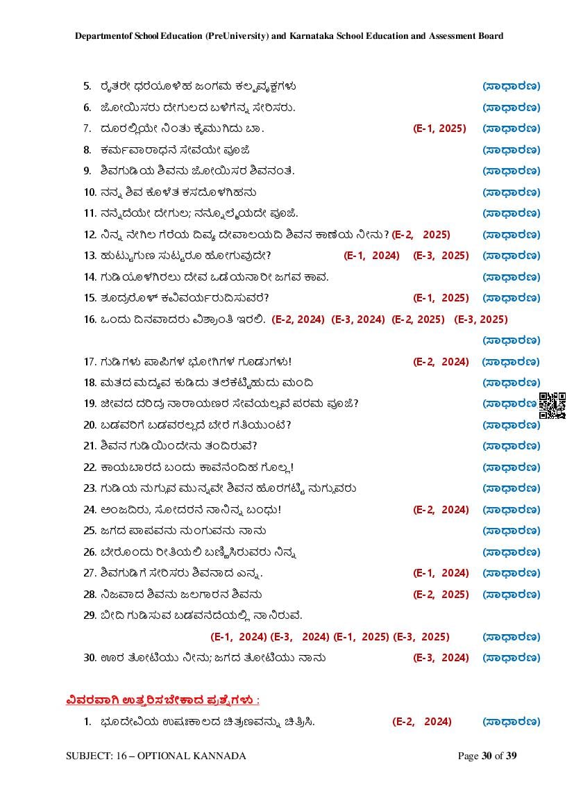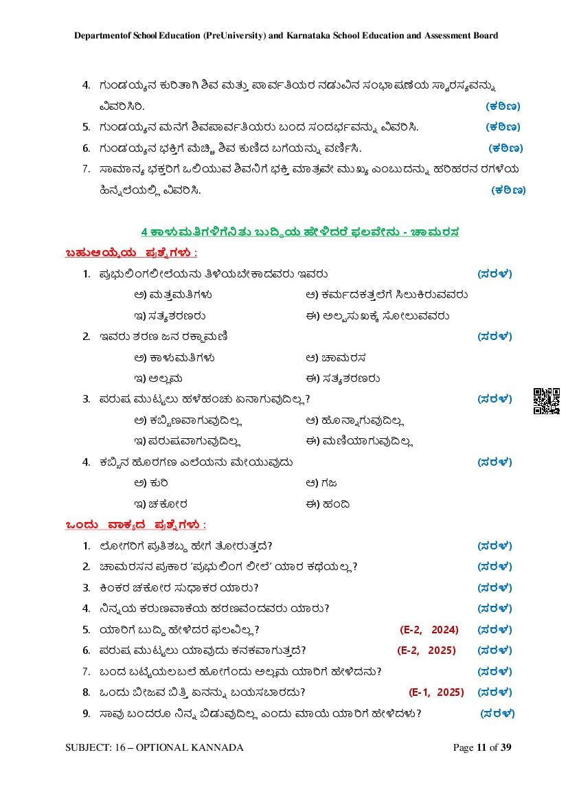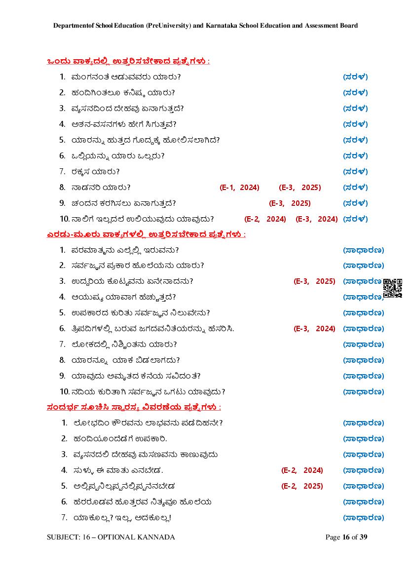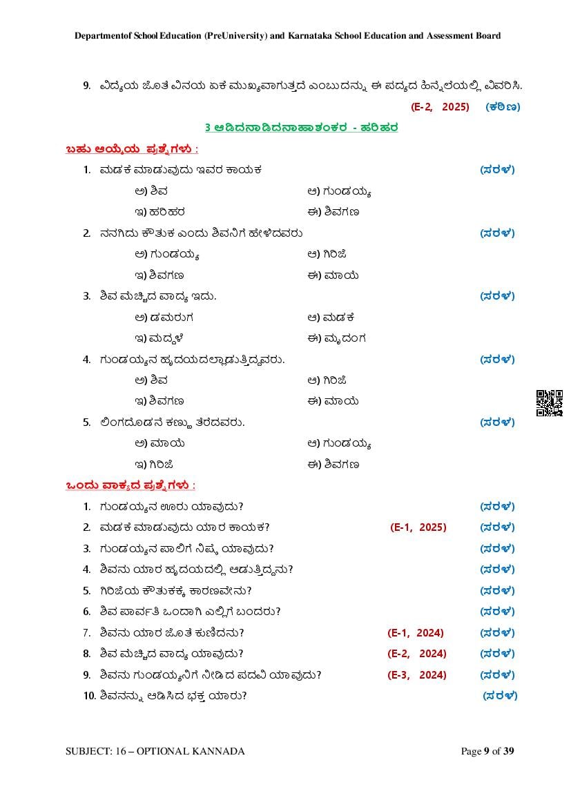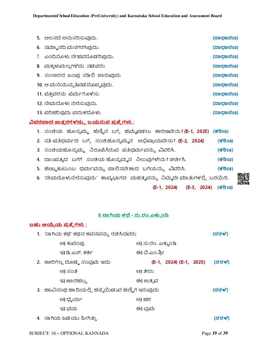 Karnataka 2nd PUC Question Bank for Kannada Optional View Download